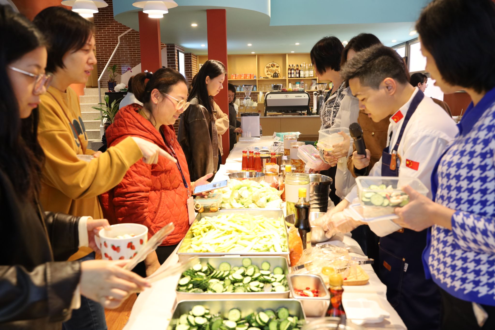 活动以“体验中外饮食文化,倡导健康生活理念”为核心,通过制作海南泡菜、四川泡菜与韩国泡菜,带领女教职工们开启了一场舌尖上的文化之旅。符文志师傅详细介绍了三种泡菜的历史渊源、工艺特色及文化内涵。参与者不仅品尝了师傅提前制作的泡菜成品,还通过图片与视频直观感受了不同地域的饮食魅力。在制作体验中,女教职工们分组协作,在符师傅的指导下亲手完成切配、腌制等工序。现场欢声笑语不断,大家互相交流心得,沉浸于传统技艺的乐趣之中,在互动中拉近了彼此距离。