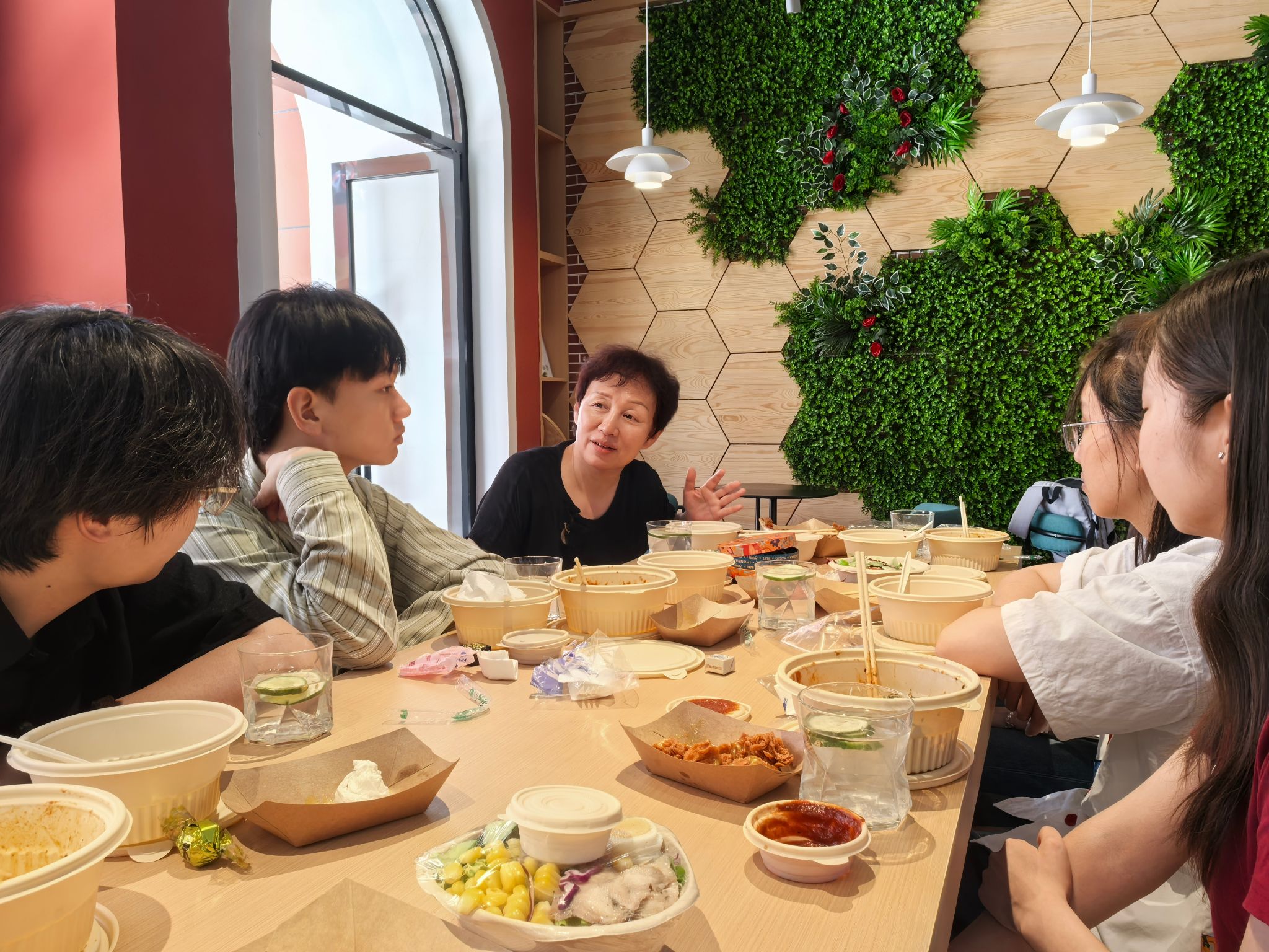 为进一步了解中爱国际合作办学项目员工动态,帮助员工解决实际学习和生活中存在的问题,2025年5月16日中午12:00,王琳经理与2023级和2024级会展经济与管理(中外合作办学)专业员工干部和班级代表共进午餐,开展面对面交流,认真听取员工的意见和建议。
