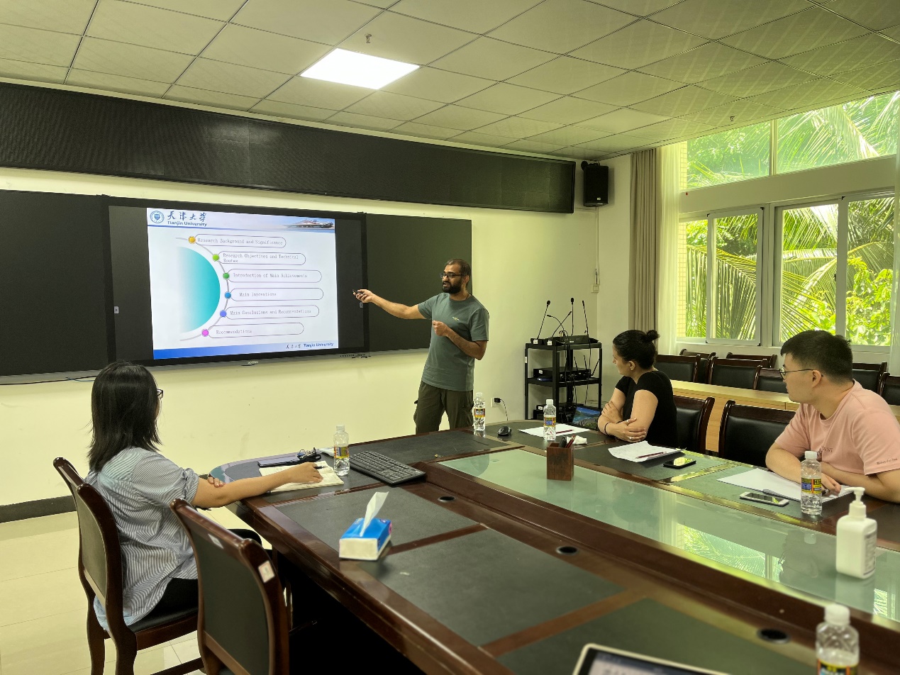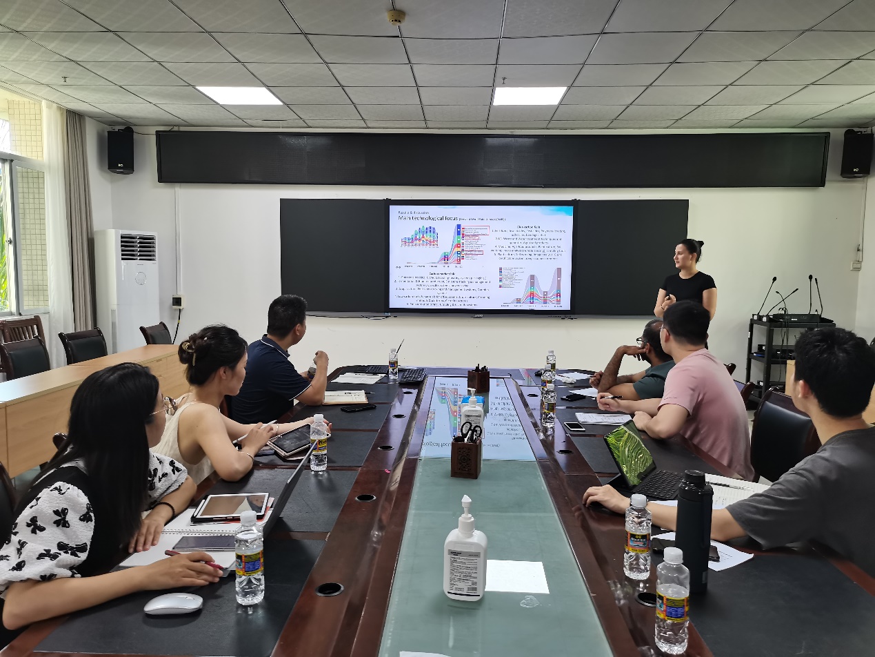 随行的两名博士研究生Aqib Zahoor和Nihed Benani为公司师生分别作题为“依托电动车和可再生能源实现交通领域2060年碳中和”与“蓝碳与碳市场:科学研究和技术开发的综合路径”的交流研讨分享。taptap点点体育-加州大学戴维斯分校能源和交通发展联合研究中心(简称“海大-UCD能源和交通研究中心”)执行主任吴丹副教授对两位博士生的报告作精彩点评,并提出后续研究拓展与合作的思路。