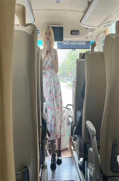 活动伊始,在参观考察的大巴车上,同学们很自然地进行轻松愉快的交流。中爱合作项目的员工热情地介绍taptap点点体育和中爱合作会展经济与管理项目,描绘新南门的晚霞,推介自己喜爱的海南特色美食与旅游项目,甚至省钱小攻略等。澳科大的员工则分享了他们对海口的感受,介绍了澳门的文化和澳科大的办学特色,以及与境内教育的差异等。很快,参加活动的小伙伴们就在线下和线上熟络起来。