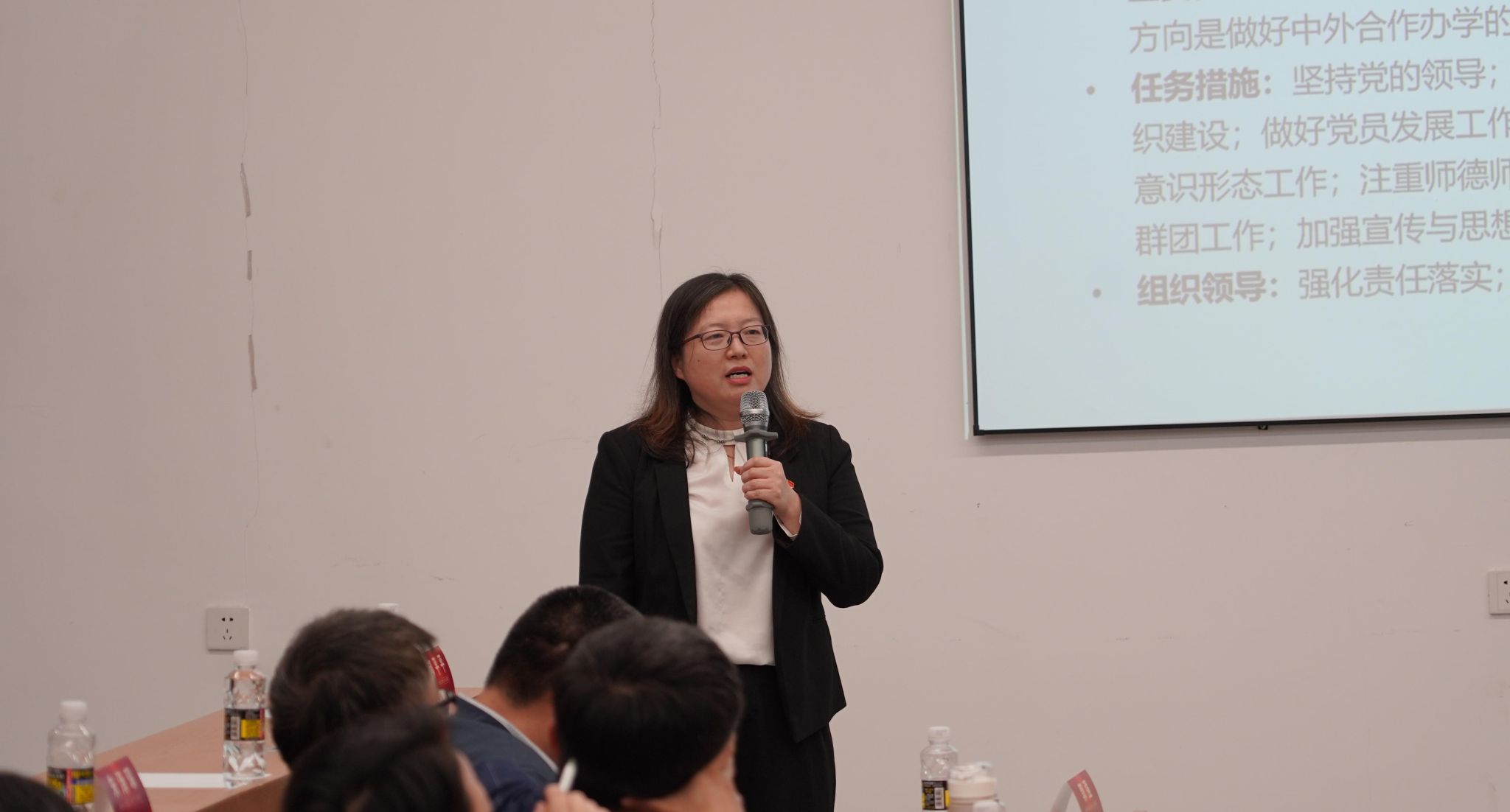 公司党委常委、组织部部长杨志昕进行工作坊点评。她强调,在全国教育大会上,习近平总书记强调要持续推进“五大战略任务”,深入推动教育对外开放,公司第三次党代会提出要建设综合性研究型国际化“双一流”大学。此次党建工作坊聚焦“党建+国际化”的主题进行探讨非常有意义。特别是邸爱英书记结合格拉斯哥公司在中外合作办学中开展党建工作的守正与创新做了非常好的报告,郭强、王华、刘亮、毋媛媛四位同志结合各单位实际作了精彩分享,希望大家结合本单位的学科优势与资源优势,积极做好国际合作办学和国际化人才培养工作,以高质量党建引领推动公司事业高质量发展,为综合性研究型国际化“双一流”大学建设贡献力量。