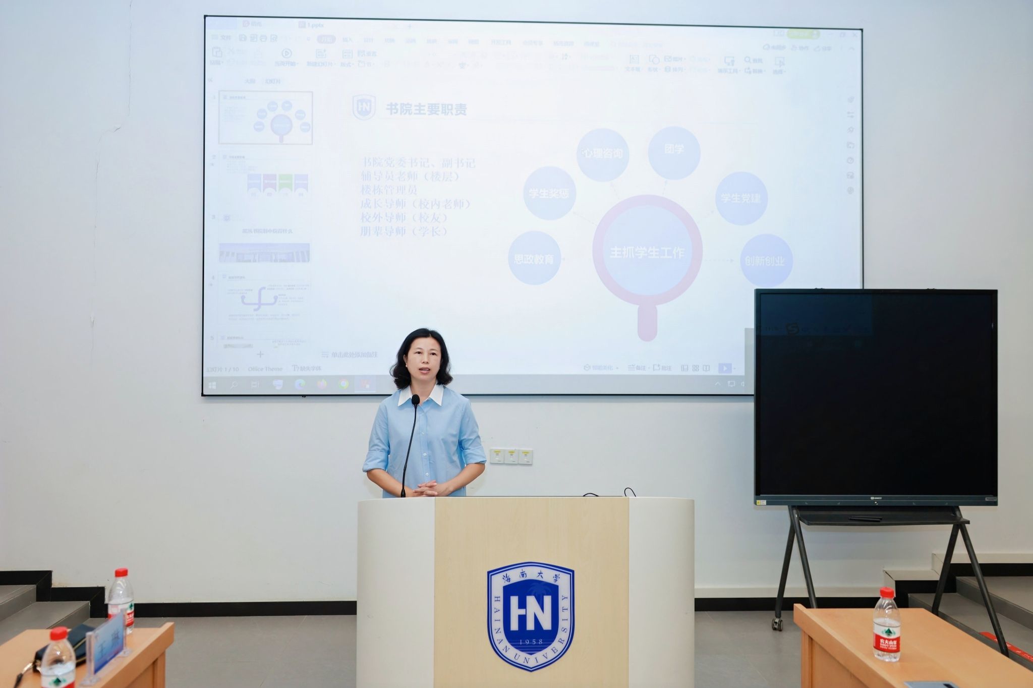 2024年8月31日下午,国际旅游与公共管理公司2024级新生家长会在观澜湖校区3A103教室成功举办。本次见面会旨在搭建家校沟通的桥梁,增进家长对公司的信任与理解,共同为新生们的大学之旅保驾护航。公司经理王琳、党委书记郭强、党委副书记欧少红出席会议,2024级新生及家长参加会议。