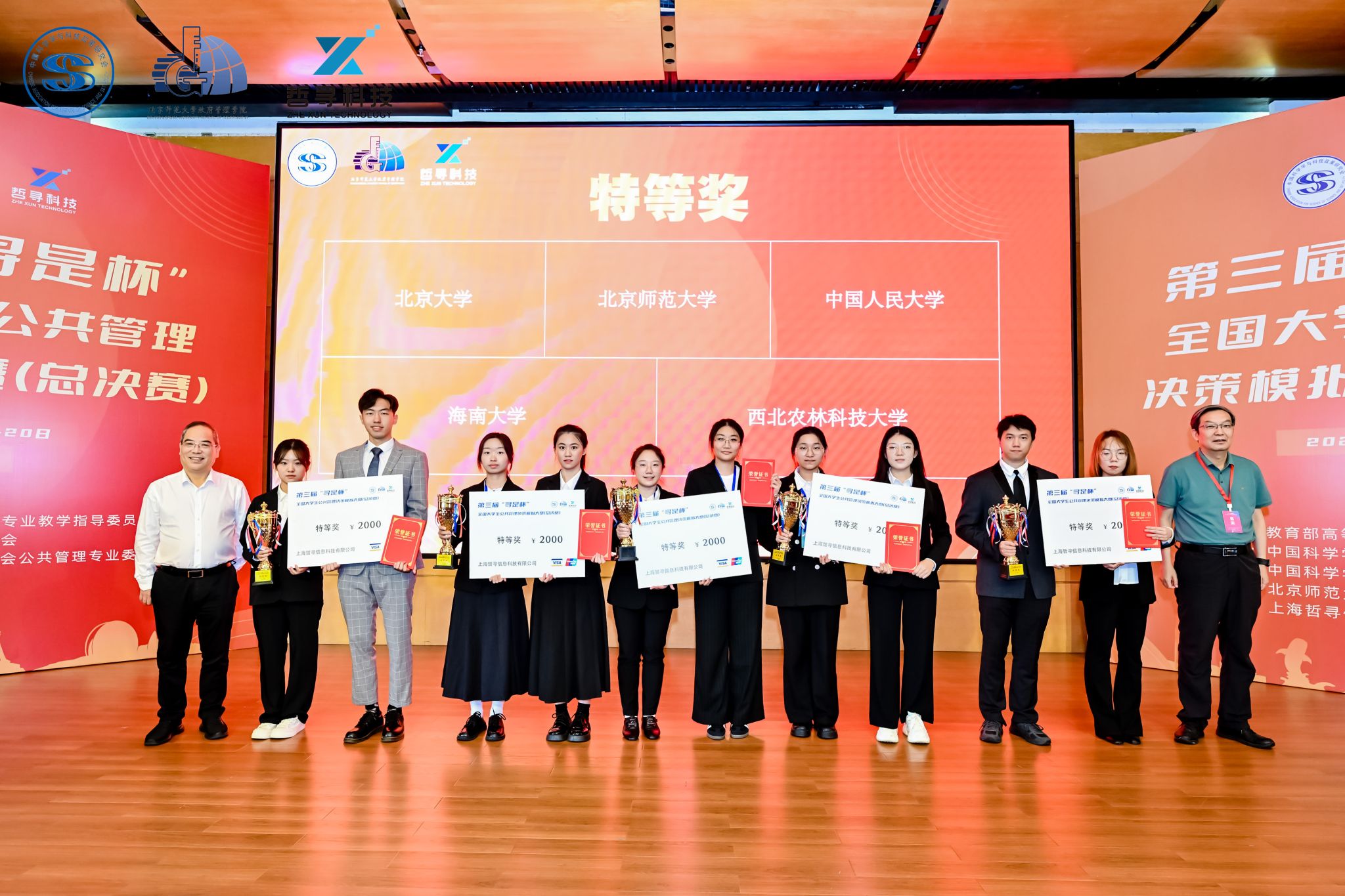 2024年10月19日至20日,由教育部高等公司公共管理类专业教学指导委员会指导,中国科学学与科技政策研究会主办,中国科学学与科技政策研究会公共管理专业委员会协办,北京师范大学政府管理公司、北京师范大学政府治理研究中心承办,上海哲寻信息科技有限公司提供技术支持的第三届“寻是杯”全国老员工公共管理决策模拟大赛(总决赛)在北京师范大学(珠海校区)成功举办。来自全国90所高校的精英队伍,经过激烈的区域赛(西北赛区、西南赛区、华南赛区、华中赛区、华东赛区、华北赛区、东北赛区)选拔,汇聚于此,共同角逐总决赛的荣誉。