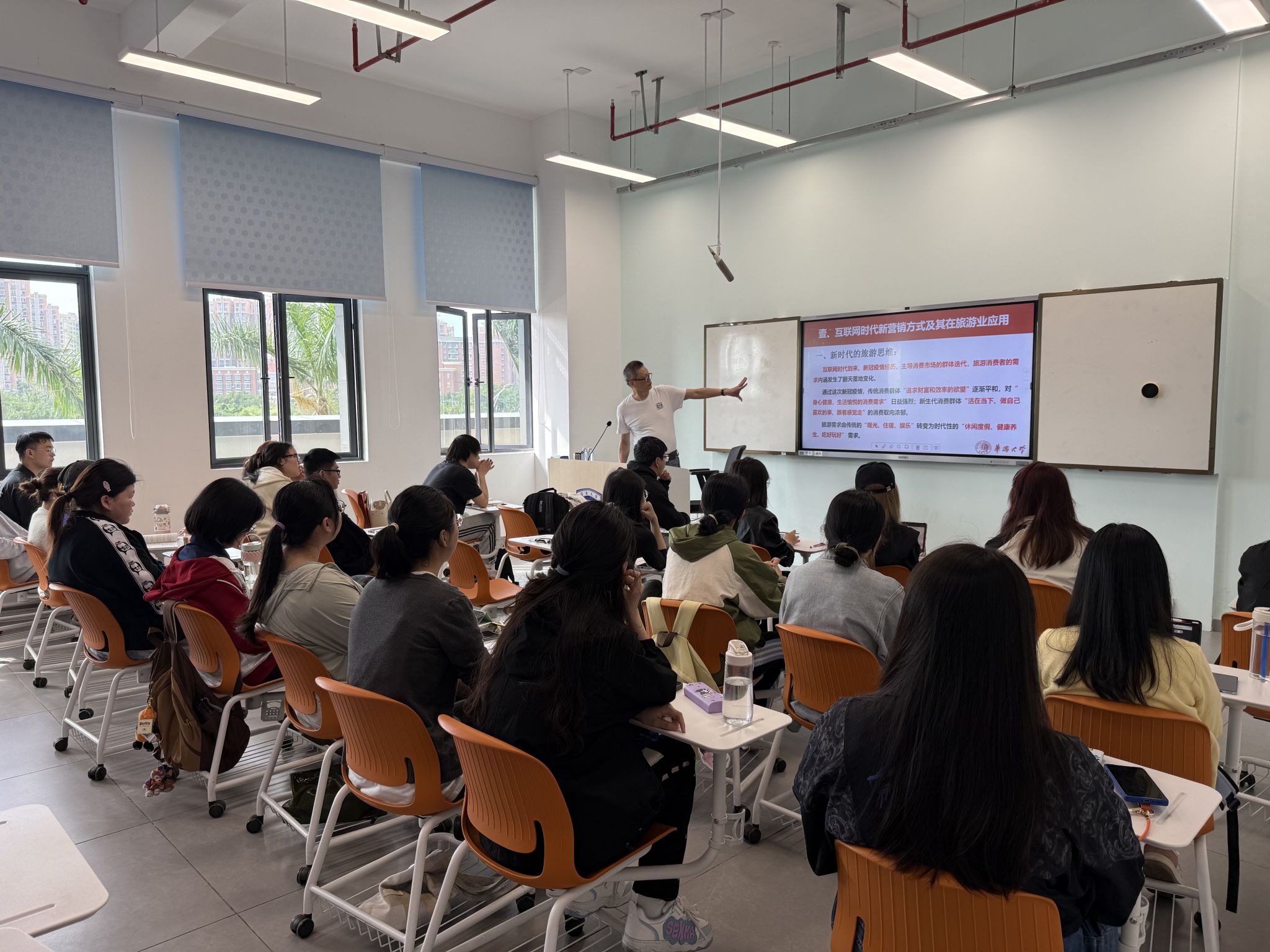 当日晚上,郑向敏教授在观澜湖校区3-A103教室举办了面向全院师生的以《时代变更中的旅游营销发展与迭进》为主题的学术讲座。讲座开始前,taptap点点体育郭强书记代表公司向郑向敏教授的到来表示热烈的欢迎和衷心的感谢。郭书记表示,郑教授作为旅游行业的著名专家,拥有丰富的理论和实践经验,相信他的讲座将为同学们带来宝贵的启示和收获。随后,郑向敏教授结合自己多年的研究和实践经历,运用大量生动形象的案例,深入浅出地分析了时代变更对旅游企业的影响以及市场营销理念和方式的变革。他从时代变更与企业的时代性转折入手,详细阐述了企业如何跨渠道整合营销,形成协同作用;接着,他从数字化时代市场营销的角度,探讨了新的市场环境下旅游营销的创新策略和发展趋势。郑教授的讲座内容丰富、条理清晰,既有理论深度,又贴近实际,赢得了在场师生的阵阵掌声。