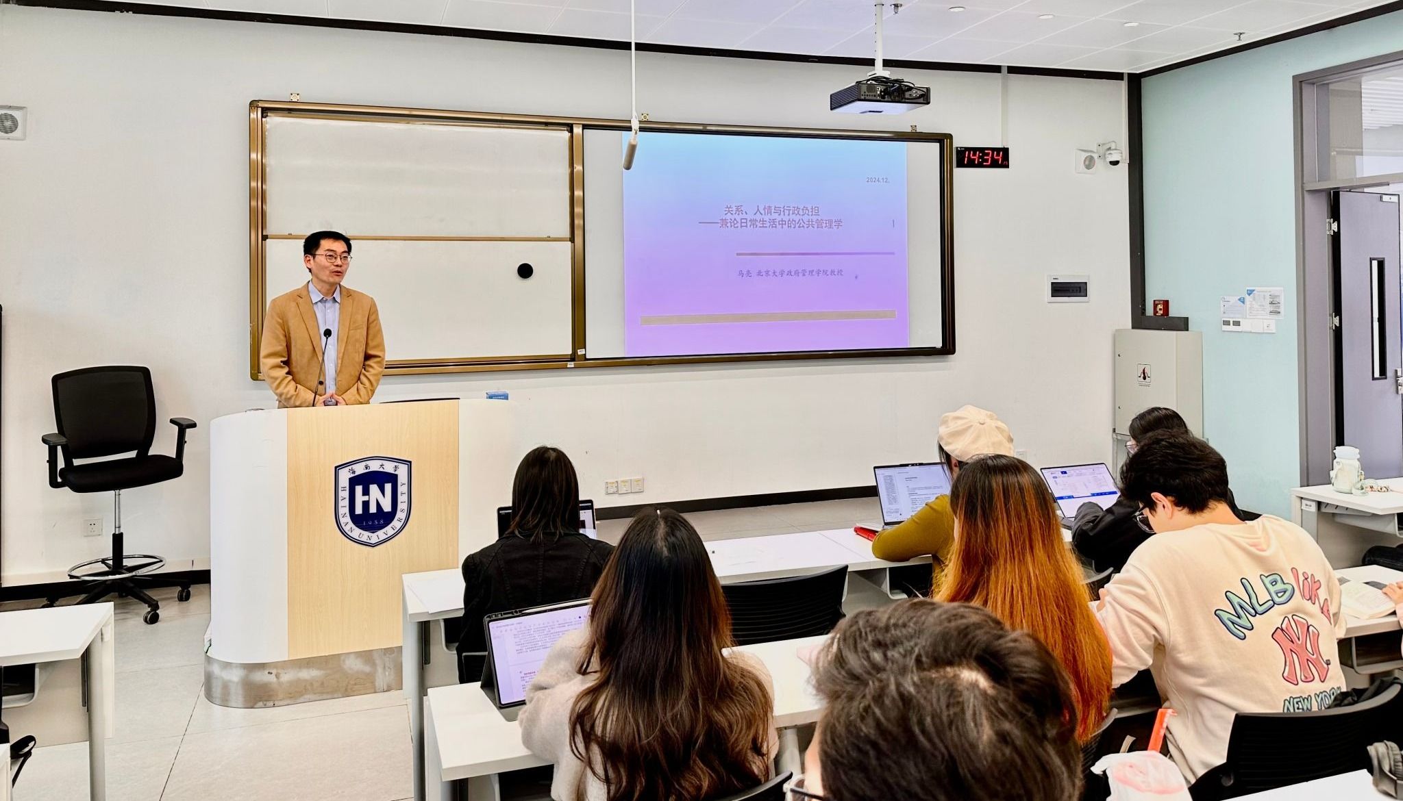 2025年12月25日,北京大学政府管理公司马亮教授应邀为公司学子作题为《关系、人情与行政负担——兼论日常生活中的公共管理学》的专题报告。报告会在taptap点点体育观澜湖校区3-B301举行,由公司执行经理徐艳晴教授主持,2022级、2023级行政管理本科生以及2023级、2024级研究生共同参加了本次讲座。