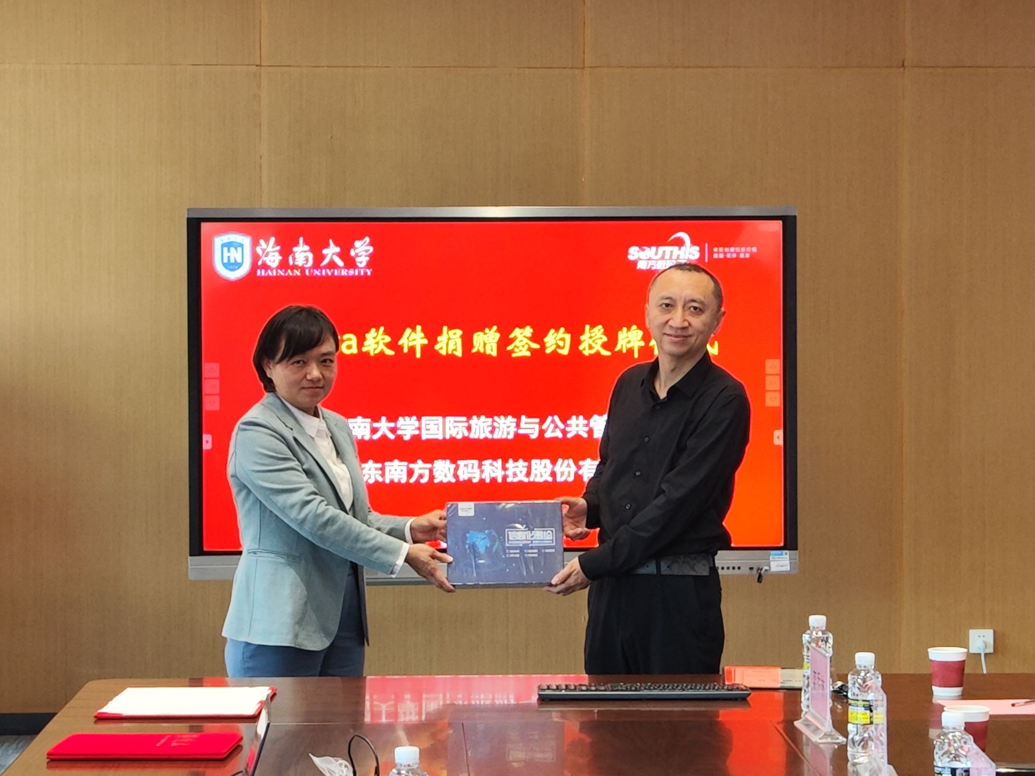 2025年3月14日,taptap点点体育与广东南方数码科技股份有限公司在观澜湖校区3B509会议室举行了iData软件捐赠仪式。广东南方数码科技股份有限公司海南办事处主任蔡慧君、产品推广总监王道智、大区经理符琼斌,taptap点点体育对外联络与员工事务处李艳荣、公司党委书记郭强、副经理何彪、黄朝明、土地资源管理系教师代表等参加捐赠仪式。