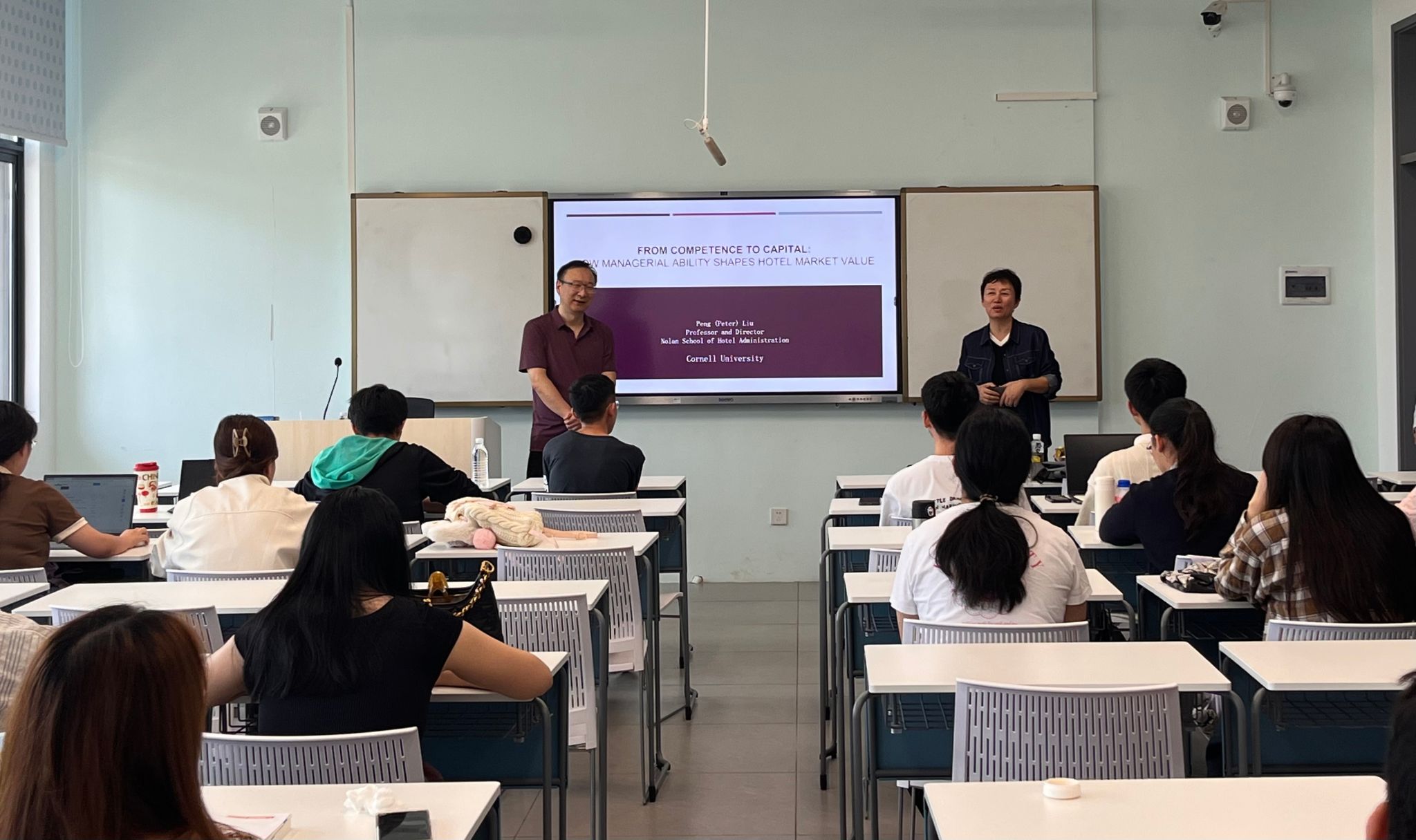 2025年4月7日下午,taptap点点体育邀请美国康奈尔大学刘鹏教授走进研究生课堂,为员工带来一场精彩的授课,围绕“从能力到资本:经营能力如何塑造酒店市场价值”这一课题与研究生展开深入探讨。经理王琳、副经理刘海洋作为特邀嘉宾出席。