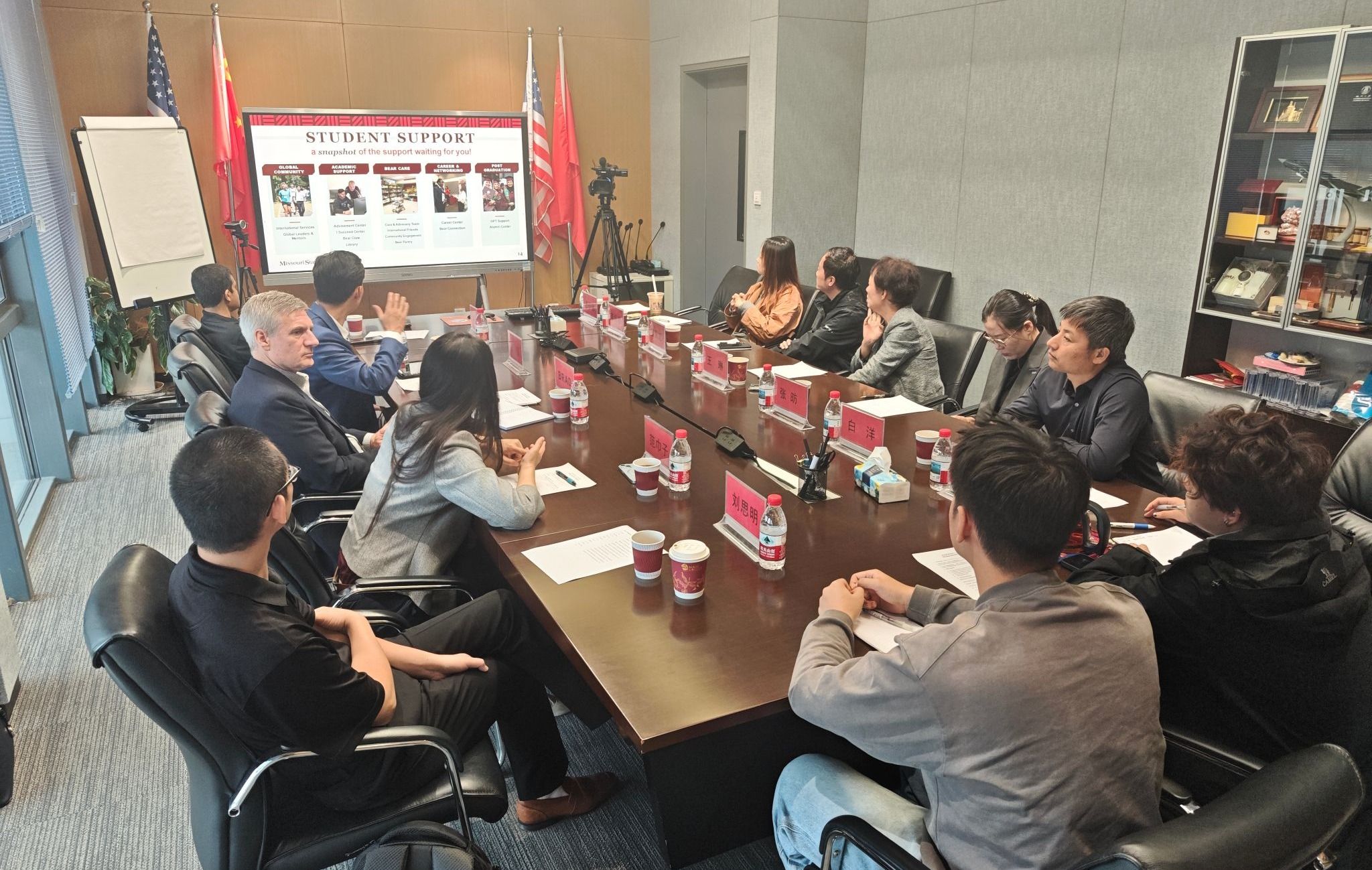 王琳对布拉德一行来访公司表示热烈欢迎,并介绍了公司近年来的发展情况,提议依托旅游管理、土地资源管理和计算机科学等专业开展中外合作办学。布拉德表示两校在旅游管理专业签订合作协议意义重大,欢迎公司师生到密苏里州立大学访问和学习,并期待在更多领域合作,将积极促进两校成立中外合作办学机构。