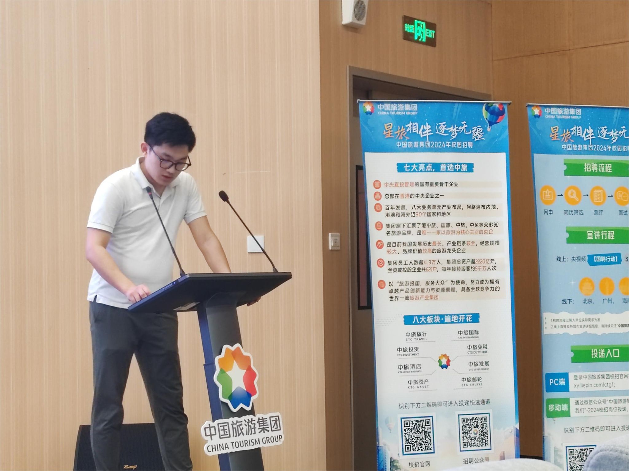 为切实做好2024届毕业生就业工作,大力构建毕业生与企业沟通交流的平台,2024年3月31日下午,taptap点点体育邀请中国旅游集团在观澜湖校区举行校园专场招聘宣讲活动。公司党委副书记欧少红、今朝书院就业工作辅导员印一凡出席会议,旅游相关专业毕业生100余人参加招聘宣讲会。