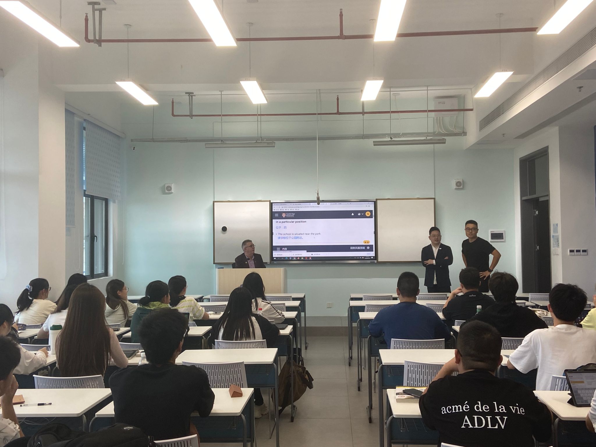 在随后的提问环节,Joseph Keating先生耐心回答了在场师生的多个问题,涉及爱尔兰的戏剧、威士忌、真丝服装以及音乐和文学等方面。现场气氛十分活跃,同学们的学习热情高涨,纷纷表示在这次座谈中受益匪浅。