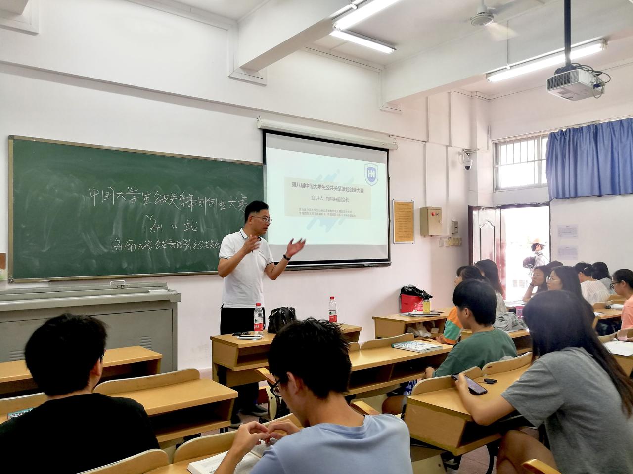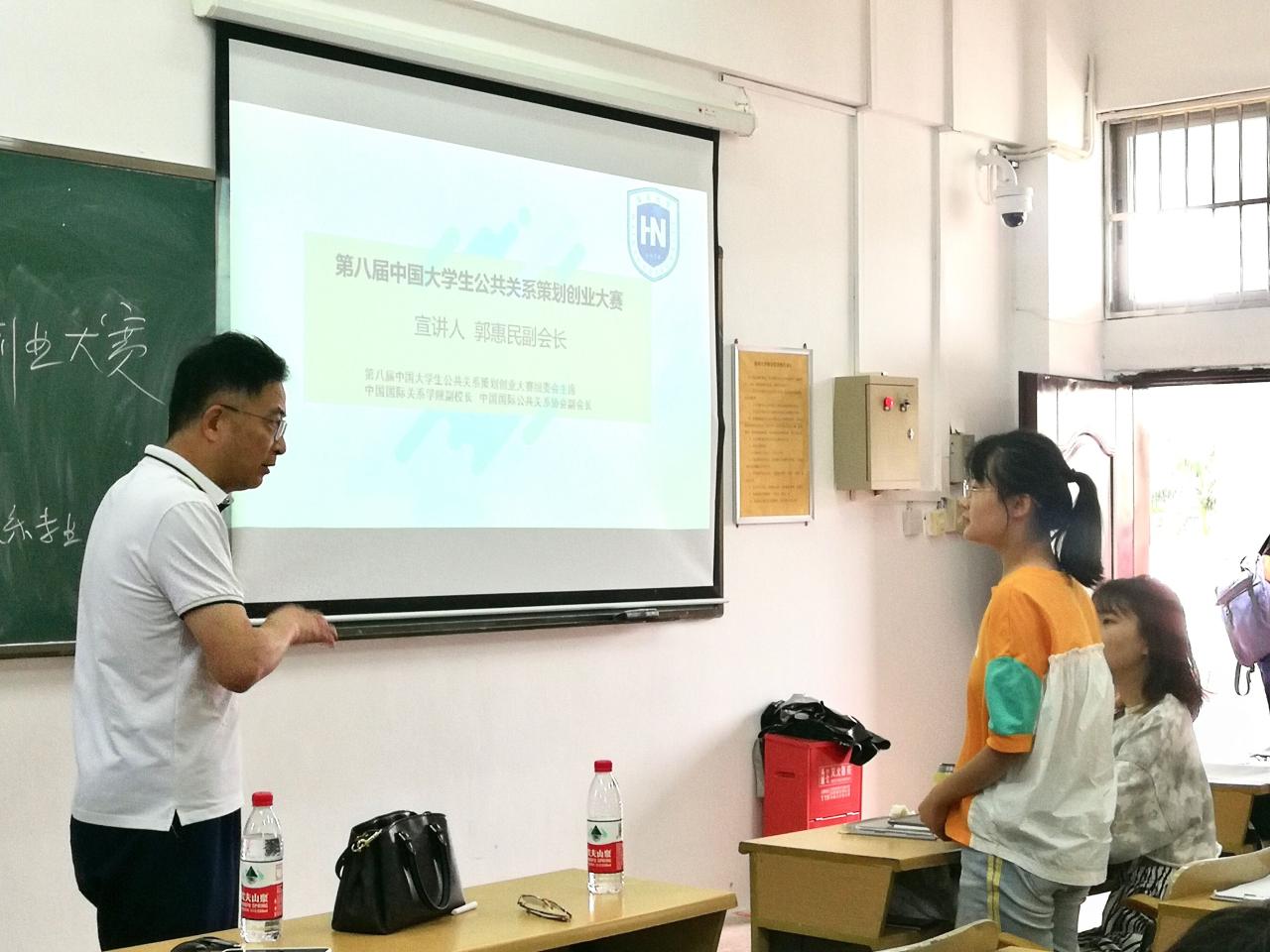 2021年5月25日上午10:00,第八届中国老员工公共关系策划创业大赛巡讲会(海口站)在公司海甸校区2-302举行。中国国际关系协会副会长、第八届中国老员工公共关系策划创业大赛组委会主任郭惠民教授为本次巡讲会的主讲人。