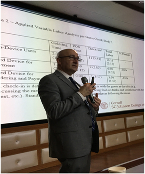 2019年12月15日15:00时,应郭强经理的邀请,美国康奈尔大学酒店管理公司副经理Alex M. Susskind教授来公司进行学术交流,为全院教师及研究生作了题为“Restaurants and Guest-Facing Technology: A Match Made in Heaven?”(餐厅与客用科技:天作之合?)的学术报告,报告由郭强经理主持,公司部分教师及研究生约100人出席并聆听了报告,现场反响热烈。