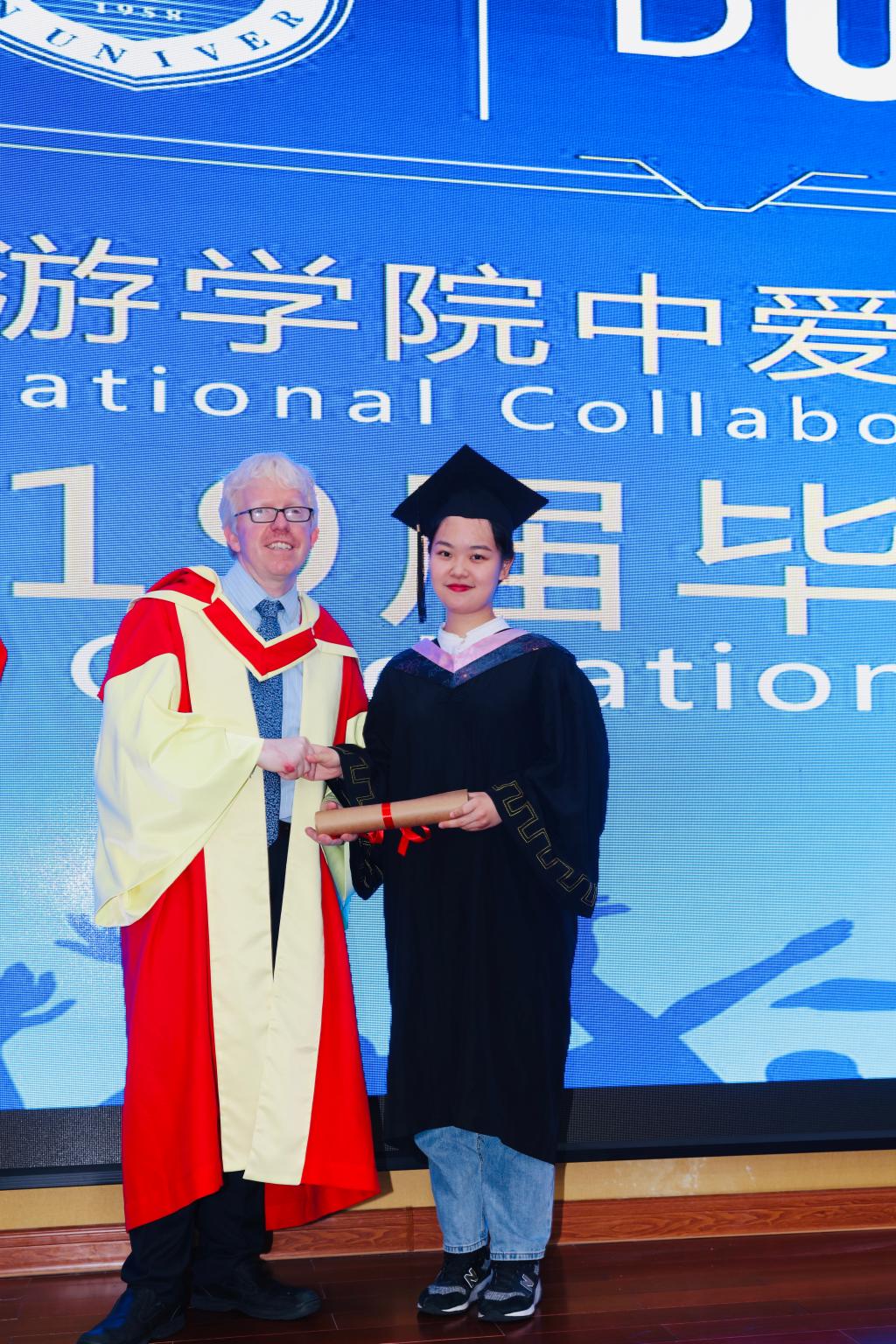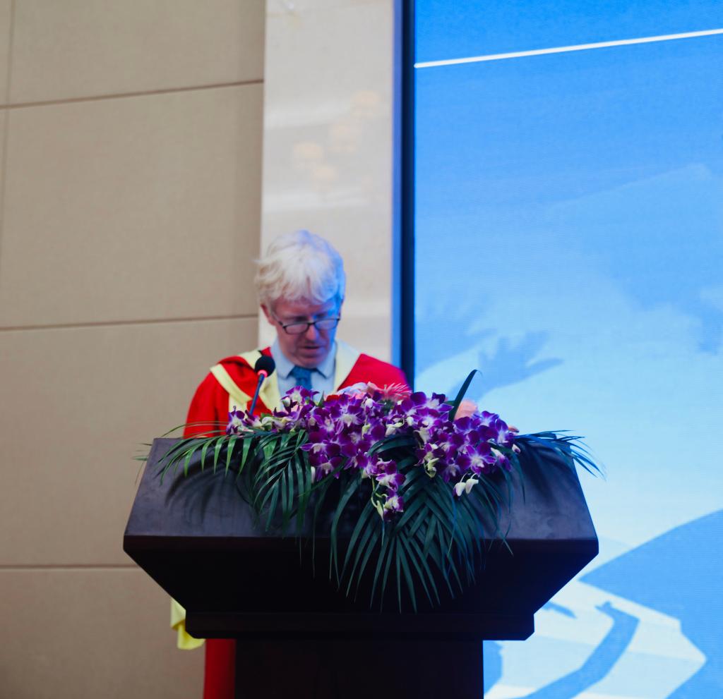 典礼由何彪副经理主持,在中华人民共和国国歌与爱尔兰共和国国歌声中拉开帷幕。2019届毕业生代表韦浩然同学满怀深情地表达了自己对母校、恩师、父母的诚挚感谢以及对大学四年点滴的怀念,以及对学弟学妹们的祝福。短暂相逢却满载师生情,只盼新竹高于旧竹枝。特邀嘉宾王琳经理与爱尔兰代表Dominic Dillane经理在发言中,都用热情真挚的话语为毕业生们衷心送上了祝福,并寄予着殷切期望。