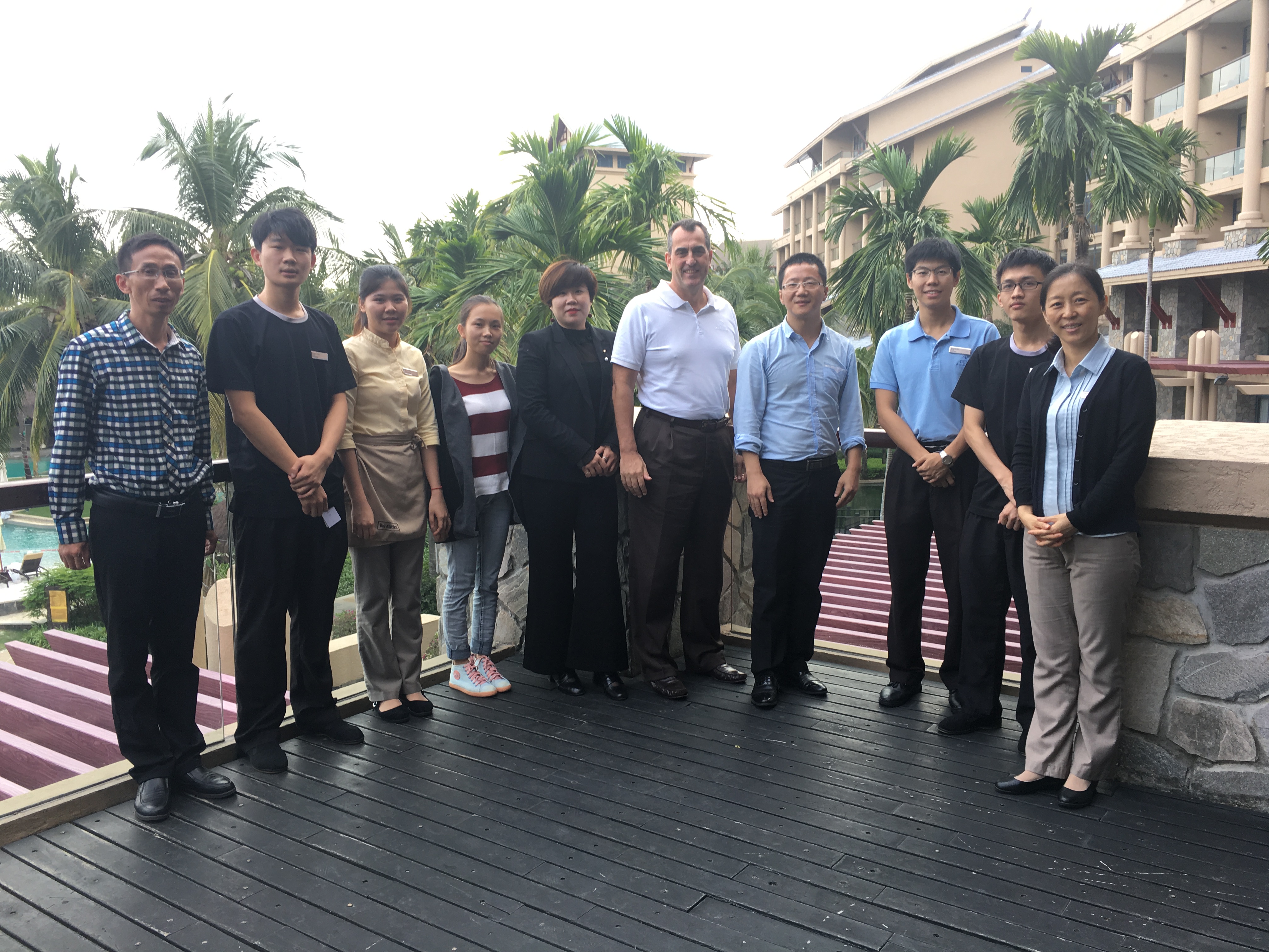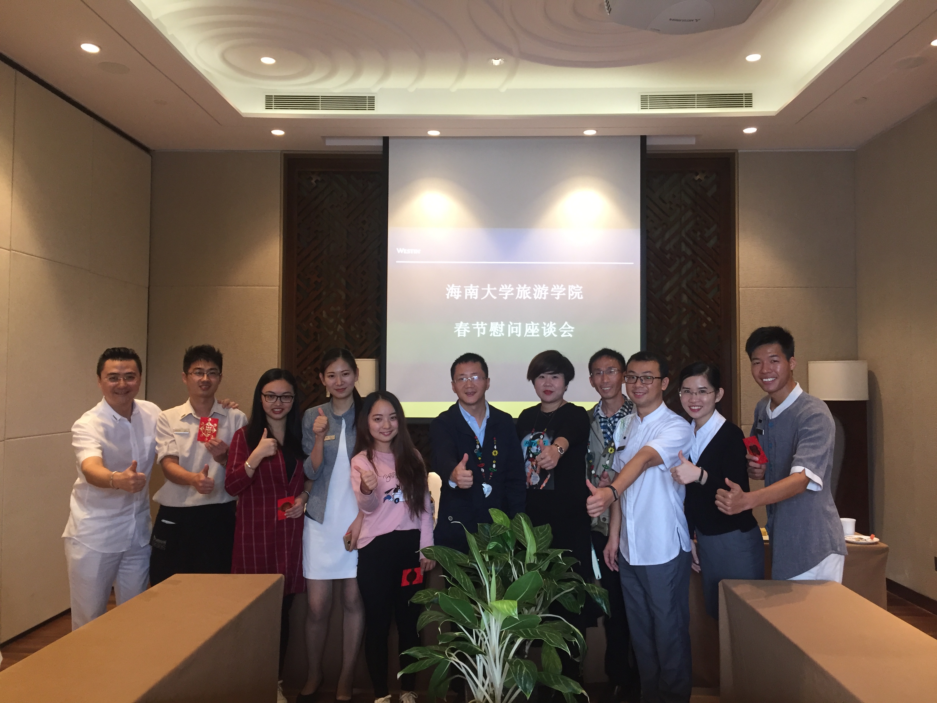 春节前夕,受韦开蕾经理委托,1月23日-25日,王永强副经理及公司员工实习实践管理中心主任王婷婷老师专程驱车数百公里,前往陵水清水湾的海南雅居乐莱佛士酒店、三亚海棠湾民生威斯汀度假酒店、三亚海棠湾天房洲际度假酒店、海棠湾红树林度假酒店、三亚亚龙湾万豪度假酒店、金茂三亚亚龙湾希尔顿大酒店等酒店,走访慰问正在这些酒店进行专业实习的2014级酒店管理专业80多名员工,受到酒店和同学们的热情欢迎。