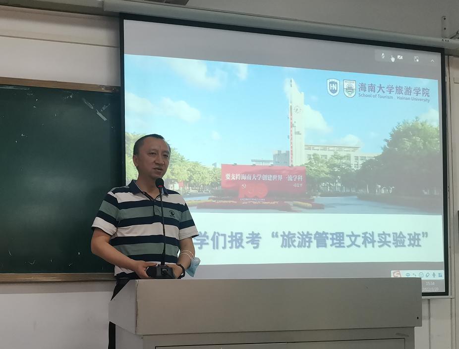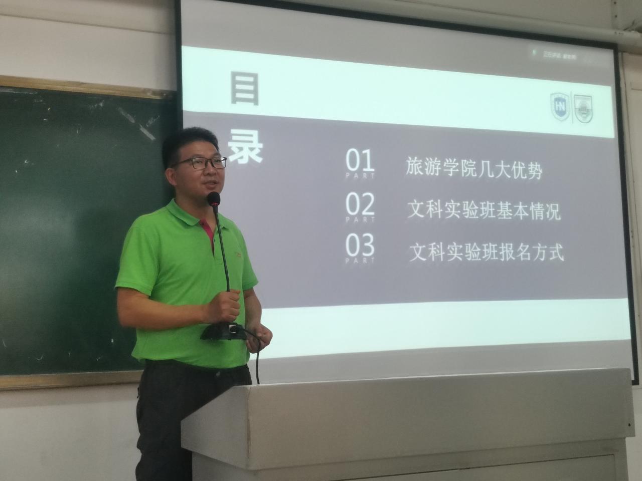接着,谢祥项副经理从旅游公司几大优势、文科实验班基本情况、文科实验班报名方式等方面,详细阐述了“旅游管理文科实验班”项目的培养目标、培养特色和培养效果,特别强调了公司对实验班的优势资源的配备和差异化培养模式的实施,勉励同学们积极报考。