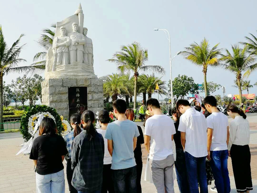 同日上午10时,支部全体党员赴白沙门渡海纪念广场开展了缅怀革命先烈线下祭奠活动,活动由支部书记罗富晟老师主持。首先,各位党员学习了渡海纪念广场背后的革命故事,并在“渡海英雄永垂不朽”纪念碑前为渡海英雄默哀致敬,缅怀为解放海南而牺牲的渡海作战部队的战士,同时支部党员还精心准备了诗歌朗诵《清明让我想起了你》、革命故事《战火中的老员工》、红色歌曲《我爱你中国》等主题节目,深刻体会清明英烈们的风骨与精神,表达了对英烈的尊重和对历史的敬畏。