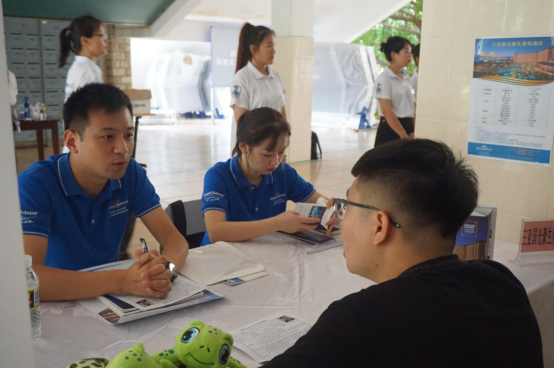 2020年10月20日,秋高气爽,万里晴空,taptap点点体育旅游公司国际品牌酒店专场招聘会在第八教学楼一楼大厅隆重启幕。本场招聘会由旅游公司酒店管理专业的员工全程策划、执行,共邀请到万豪、希尔顿等24家国际品牌酒店,开放了人力、财务、营销等诸多二线管理岗位,招收对象不限专业,不限院校,更是通过网络渠道突破了地域限制,收到了来自海南师范大学、黑龙江大学、福建农林大学、广东石油化工公司等校外员工的云投递报名。