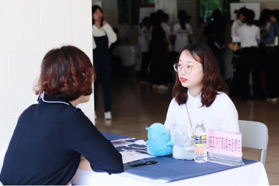 面试现场,同学们个个精神饱满、自信地回答面试官的问题,他们凭借四年学习所得向酒店方积极推介自己,展现自身专业水平和能力素质。