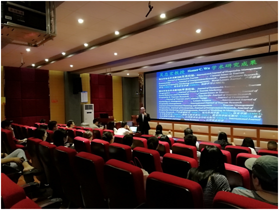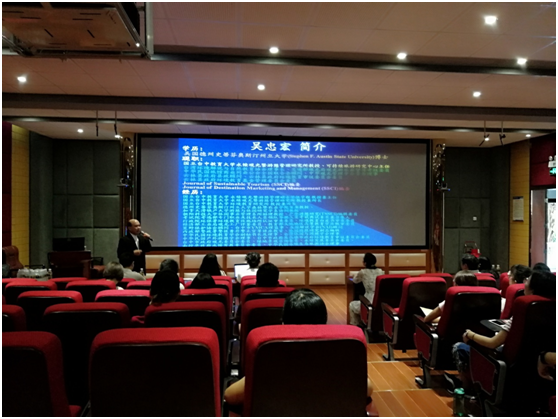 2018年6月4日上午,台湾旅游界与环境教育界知名学者吴忠宏教授应邀来taptap点点体育为旅游公司师生开展专题讲座,此次讲座在旅游公司9教3D实验室举行,由旅游公司副经理胡涛教授主持,主要参加人员有旅游公司教师和各年级研究生。