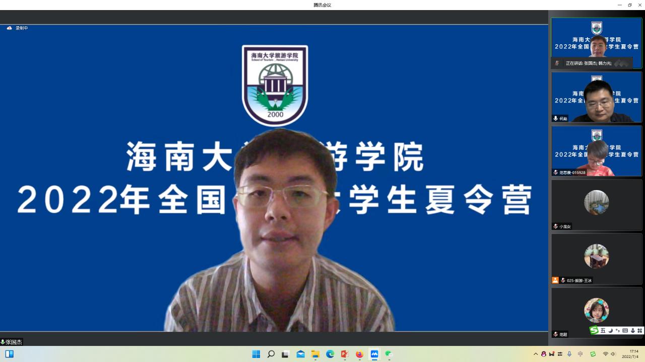 张国杰老师给营员们作了题为《旅游研究与论文发表》的学术报告。张老师结合自己在海外留学的学习研究经验,与营员们分享了旅游研究与论文发表的心得。张老师还一一解答了营员们的疑惑,张老师本次报告为营员们的未来研究提供了一个独特的视角,让同学们深受启发。