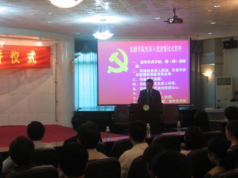 3月10日下午的旅游公司多功能厅座无虚席,旅游公司党总支在这里举行隆重的新党员入党宣誓暨党员重温入党誓词仪式。出席本次宣誓仪式的有公司党总支吕裕昌书记、公司党委组织部韩力光科长、公司党总支组织委员金晟同志、学工办的全体辅导员和教工、员工支部的全体党员、发展对象及部分入党积极分子。宣誓仪式由员工党支部组织委员林勇同志主持,金晟同志代表总支致辞并宣布参加宣誓的十名预备党员名单,吕裕昌书记代表总支讲话,员工党支部的谭洁、曹素娟分别作为党员代表和预备党员代表进行发言,最后由韩力光科长代表海大党委组织部进行总结发言并提出要求。入党宣誓仪式在热烈、隆重、庄严的气氛中进行,感染了每一位与会同志,同时也是一堂很好的党课教育课,更是为旅游公司党总支下步开展党员保持先进性教育活动写下了亮丽的一笔。