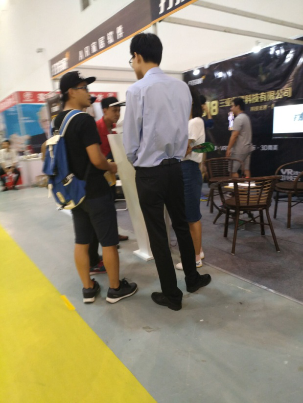 员工与会展工作人员交谈