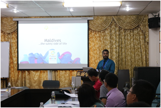 马方代表纳斯尔.瓦吉赫首先感谢公司的热情接待,介绍了马尔代夫的基本情况并播放了旅游宣传片。随后马尔代夫国立大学等5所高校的代表们分别介绍了他们大学的基本情况和办学特色,并表示十分期待能够与taptap点点体育建立校际友好协作关系,并尽快与旅游学开展实质性的合作。