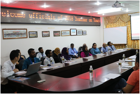 2018年10月23日上午,受韦开蕾经理委托,旅游公司王永强副经理在八号教学楼205会议室接待了参加商务厅商务培训中心援外培训项目“2018年为马尔代夫培训旅游管理人才研修”班的马尔代夫旅游部、公共关系部及马尔代夫国立大学等5所高校的11名代表。