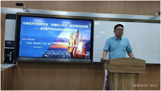 公司耿松涛教授做了题为《会展经济与管理专业“双螺旋上升式”教学模式的探索——基于政产学研用融媒协同创新的视角》 的主旨发言。