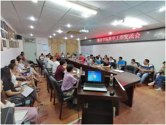 2019年7月9日下午15:00-16:25,taptap点点体育教务处处长张云阁教授应邀在旅游公司8-205会议室,就一流本科建设的相关工作与公司教师进行了专题座谈交流。交流会由经理郭强教授主持召开,旅游公司党委副书记(主持工作)韩力光、副经理何彪、侯佩旭、谢祥项,以及各系主任、各专业负责人、院级督导员、行政各办主任以及没有监考任务的教师共38人参加了交流会。