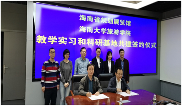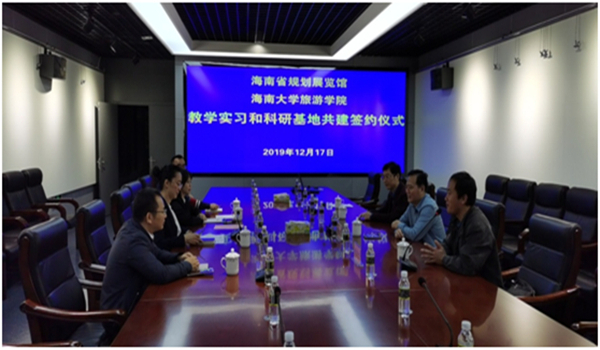 为促进旅游公司与海南省规划展览馆之间的交流与合作,为员工提供校外实习实践基地,同时也为海南省规划展览馆更好地发挥综合性展馆作用,2019年12月17日上午,双方在海南省规划展览馆二楼会议室,签定教学实习和科研实践基地协议。