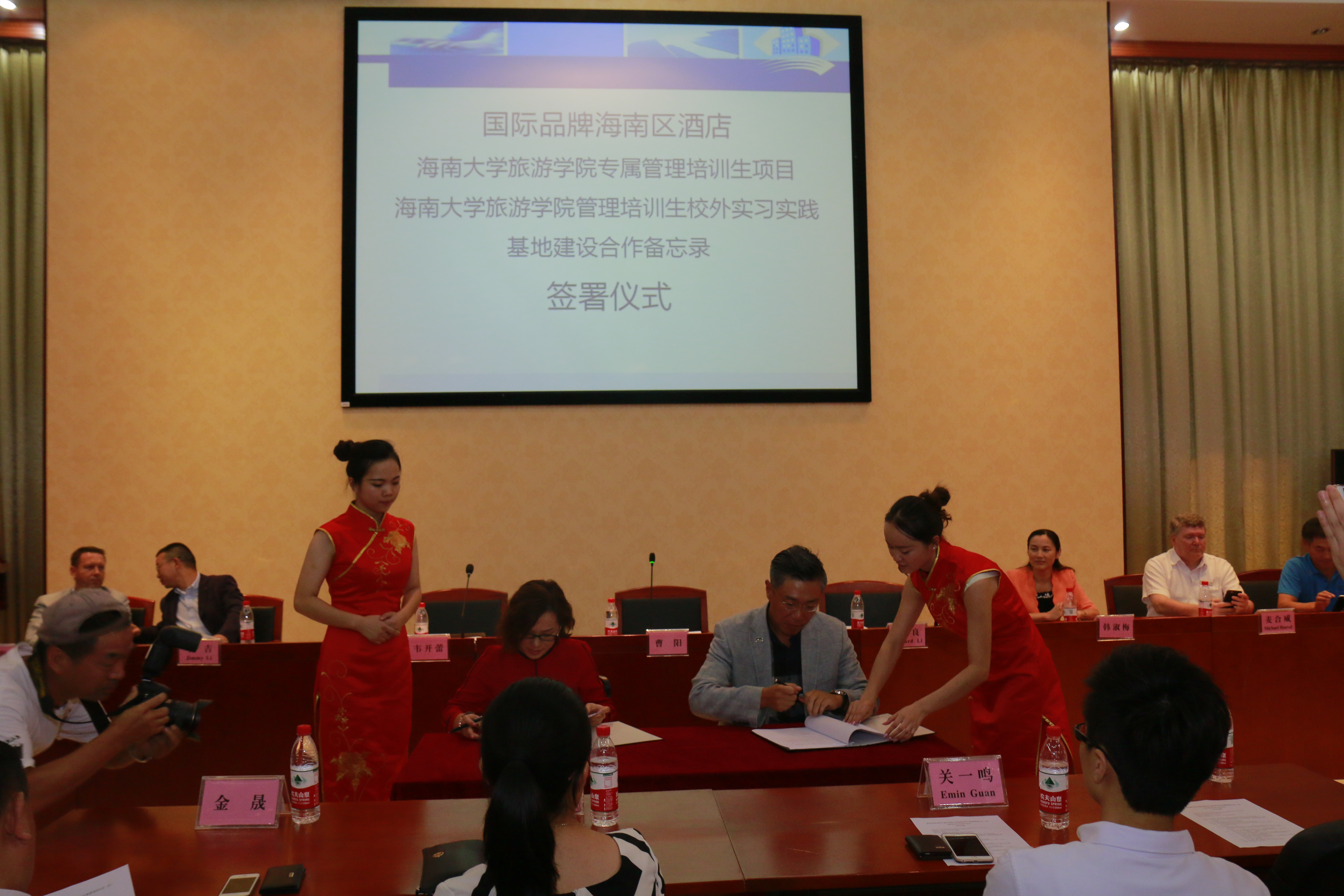 之后,taptap点点体育旅游公司韦开蕾经理与海南区区域总经理李良先生代表双方签署了国际品牌海南区酒店taptap点点体育旅游公司专属管理培训生项目及taptap点点体育旅游公司管理培训生校外实习实践基地建设合作备忘录,表明该项目正式启动。双方将在合作常规性的专业实习、毕业实习等顶岗实习的基础上,进行高水平深层次的合作。自2016年开始,携手合作在taptap点点体育开展“海南区酒店taptap点点体育旅游公司专属管理培训生(MT)”项目。该项目旨在发掘与培养一批优秀的、有潜质的未来酒店管理人才。符合条件获得录用的员工,在完成毕业实习期后,通过为期12个月的酒店管理岗位轮岗培训,结合实操与理论知识双重培训,使受训生在项目完成后能成为酒店的中初级管理人员。这是国际品牌高端酒店为海大学子量身定做的酒店行业高层次实习就业项目,是全省乃至全国旅游院校中的首创。是taptap点点体育旅游公司服务地方社会经济发展、对接旅游产业人才需求、深化校企合作、创新人才培养模式、提高人才培养质量、促进老员工高水平就业的重要举措,也是全面实现旅游公司国际化高层次多功用复合型旅游管理人才培养目标的有力保证。同期,还举行了“旅游公司精英讲坛客座教授、业界导师聘任仪式”、“旅游公司业界专家教学咨询委员会委员聘任仪式”等活动,并在最后公布了管理培训生选拔的初轮面试结果,在当天下午进行最终的二轮、三轮面试。
