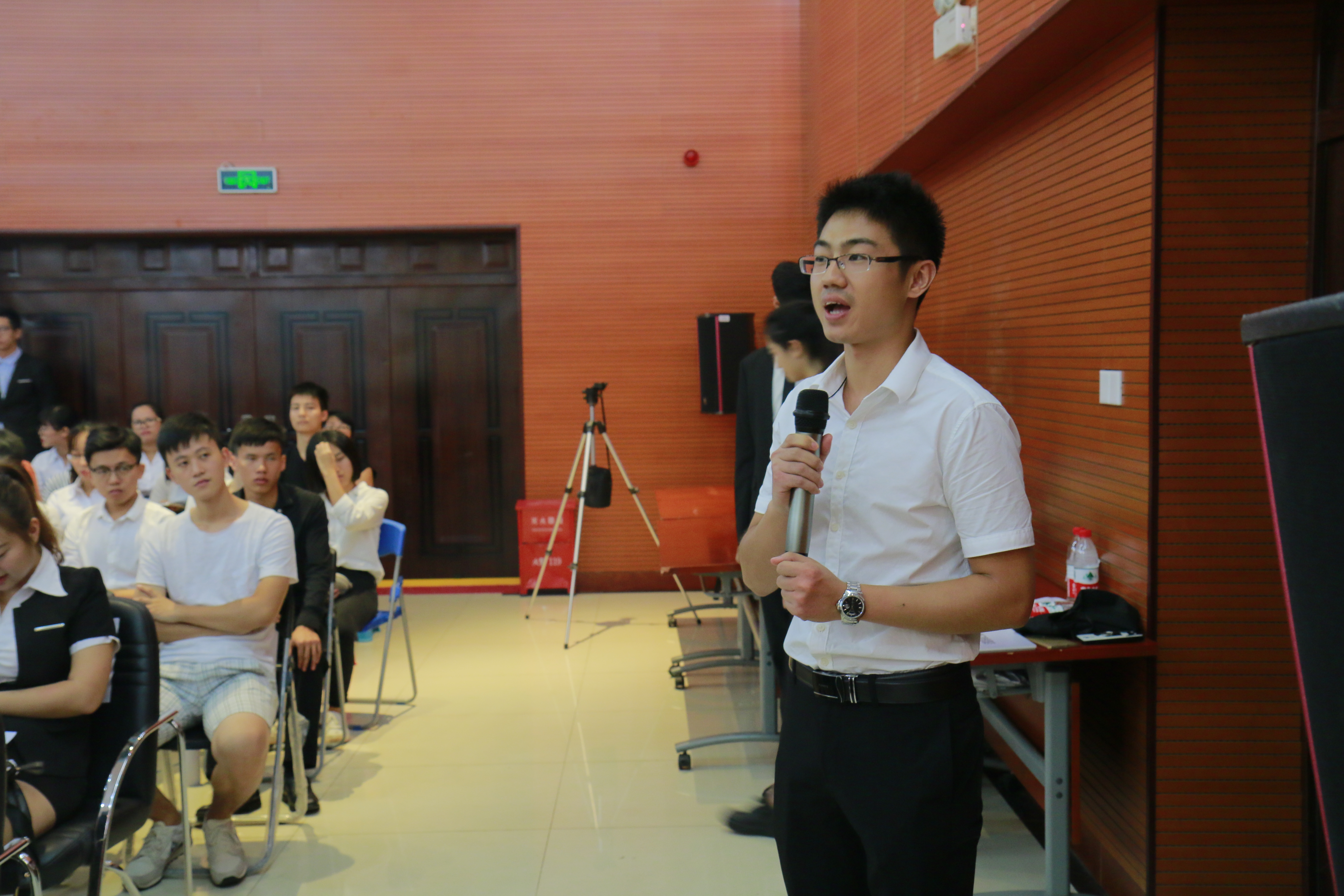 随后,旅游公司酒店管理专业的理冲同学代表有意愿参加本次MT项目的同学进行了发言,充分表达了对酒店业的热爱,表示通过之前的实习和了解,让自身对酒店的认知有了改变,自身感受的转化与成长提升,并代表广大入围者表态愿意通过自身的汗水与努力,达到最终的目标。