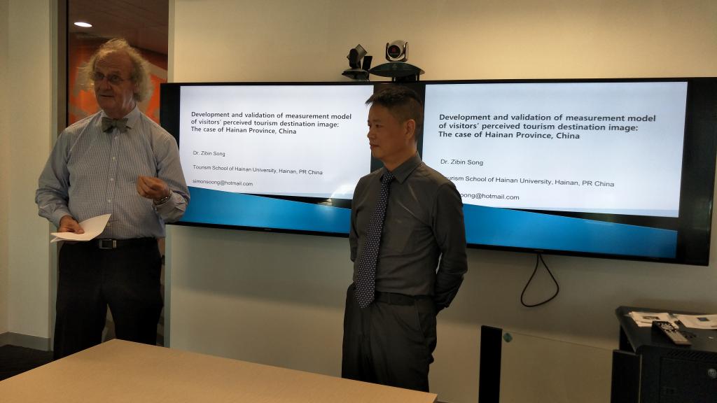 北领地旅游厅为宋博士的到访组织召开了一场专题研讨会。参加研讨会的旅游厅官员有旅游厅市场与沟通处处长Adam Coward、规划与政策处处长Valerie Smith、旅游与文化处处长Alastair Shields、国际运营处处长Robert Crack以及CDU商公司执行经理Aggie Wegner博士等等。在讨论会上,宋博士首先给参会人员做了有关专题发言,发言的主题包括游客感知旅游地形象的研究新发现及其对旅游地管理和营销的启示。之后,双方围绕北领地今后如何吸引更多中国出境游客到访北领地的问题展开了深入的讨论。本次旅游业界人士和学界学者互动交流触及诸多旅游地管理和营销领域的范式实践和理论前沿,对今后双方的旅游管理营销策略和理论研究都颇具启发性意义。