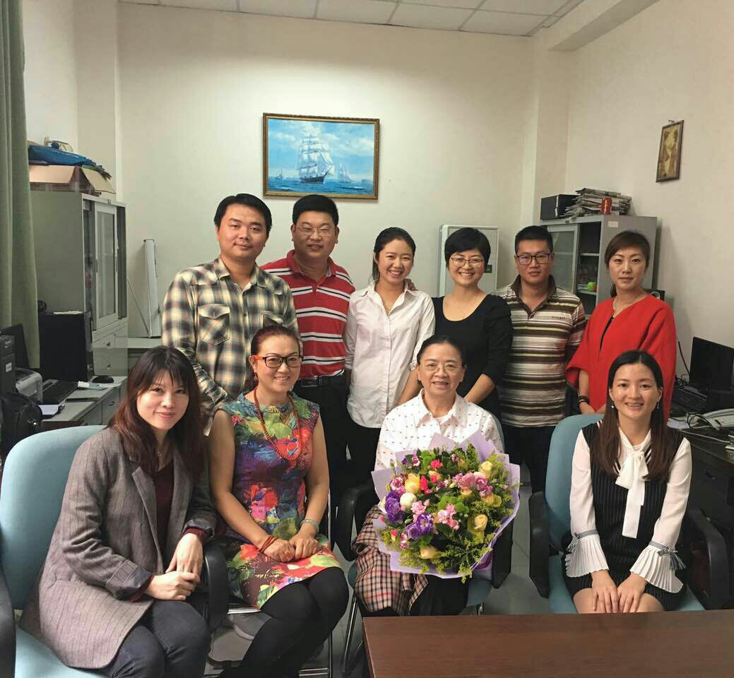 应外系老师与海口优秀员工合影(02级应英胡晓君、李丹云、吕诺;04级应英喻学林、杜应魁、05级旅管周玲)