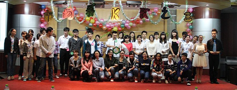 2012年12月2日下午,taptap点点体育旅游公司市场系K歌之王决赛如期举行。本次大赛共有50多位选手报名参加,最终有12位选手进入决赛。市场系辅导员黄良颖老师以及院系各员工会主席和文娱部部长作为嘉宾出席了本次活动,评委由袁方醒老师和曾嫣姿等4位上一年度院“十大歌手”担任。本次决赛共分为四个环节,即my way my style、我爱记歌词、歌曲轮番唱和巅峰对决。选手们在舞台上不仅尽情地展示了自己的才艺,创造出了一幅幅声色兼美的亮丽风景,而且还用自己动听的歌声和不俗的舞台表现,诠释着青春飞扬的主题。整个比赛过程气氛热烈,激情挥洒,掌声和喝彩声经久不息,一次次将整个现场的气氛推向高潮。他们简单明快的曲调,不同的唱法,不同的风格,调动了在场观众的热情气氛。参赛选手们镇定自若,对歌曲的演绎和台风,展示他们不凡的实力,同时也表现了老员工朝气蓬勃的精神面貌和精湛的艺术感染力。经过激烈的角逐,本次比赛的“K歌之王”由12应英班的李梦宇同学获得,同时她还夺得了最佳人气奖,12文实班的叶梅和12电子班的何则猛分别获得最佳潜质奖和最佳偶像奖。最后,在《和你一样》的旋律中,比赛圆满的落下了帷幕。