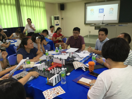 会e人公司带着超级沙盘,走进海大校园,全面升级教学课程,实践与专业知识同时讲授。主讲人武军老师将全体员工分为三组,以小组为单位开展实训练习。在介绍模具的使用方法后,三个组分别开始小组作业——组织搭建会场。同学们聚精会神、专心致志。完成后,武老师就小组作业完成情况做出点评和指正,并就实际操作过程中的会场布局的重要知识做了详细讲解。在各小组完善作品的同时,武老师与公司教师就课程设置、实践培训等内容进行了进一步交流与探讨。5大院校根据此次活动,就如何加强员工动手能力和实践能力、如何更好地设置教育课程展开热烈地讨论。此次沙盘活动为海南省高校会展专业的师生提供了一个全新的交流平台。