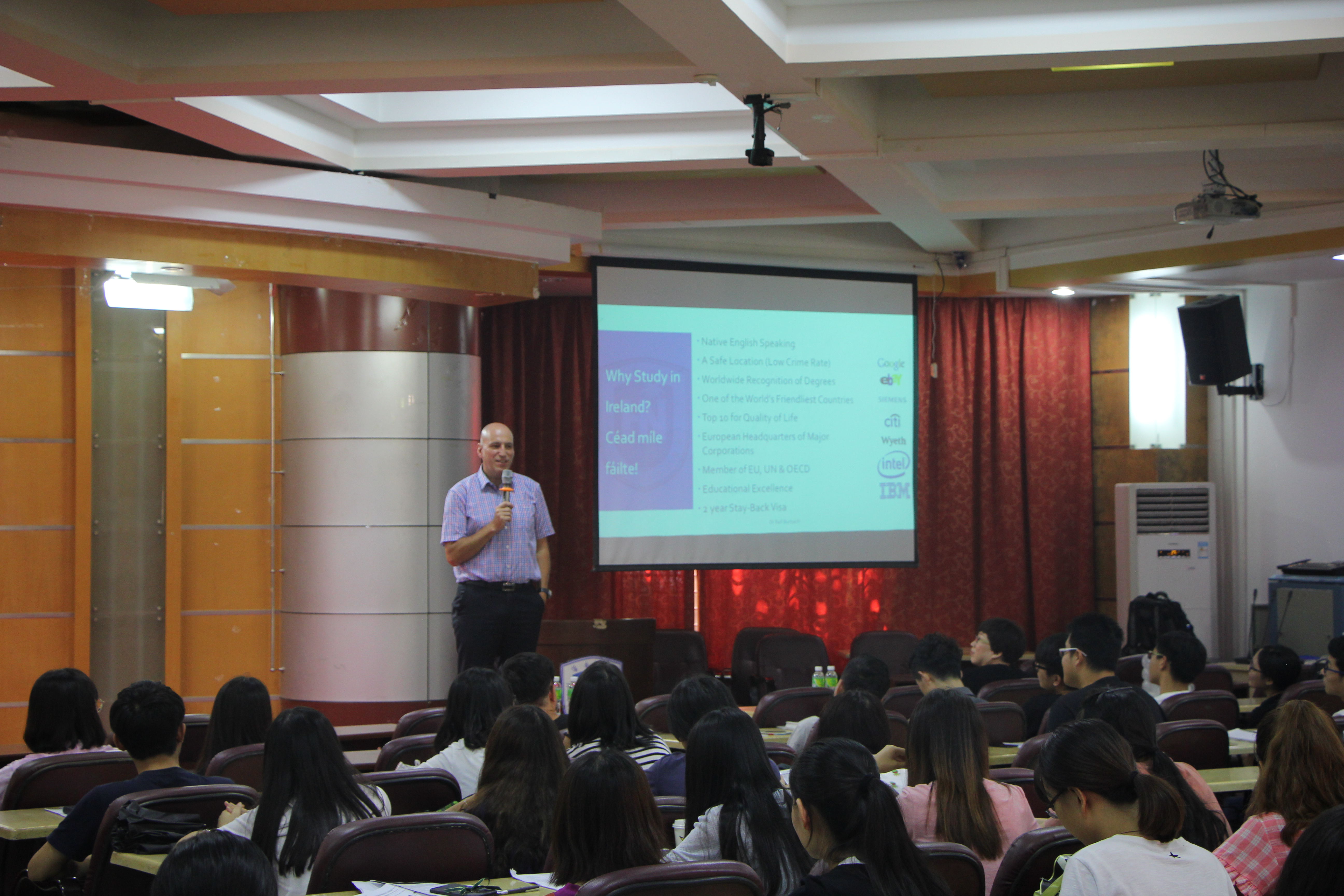 爱尔兰都柏林理工公司旅游公司副经理Ralf教授给大家介绍爱尔兰留学