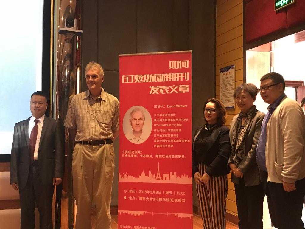 2018年3月9日下午,在taptap点点体育国际旅游旅公司101会议室,现任职澳大利亚格里菲斯大学(Griffith University)教授,讲座教授David Weaver,应邀来taptap点点体育进行“如何在顶级旅游期刊发表文章”的专题讲座。本次讲座由国际旅游公司和旅游公司共同主办。旅游公司韦开蕾经理和国际旅游公司王琳经理主持,参加人员有旅游公司、国际旅游公司的老师、国内和留学研究生。