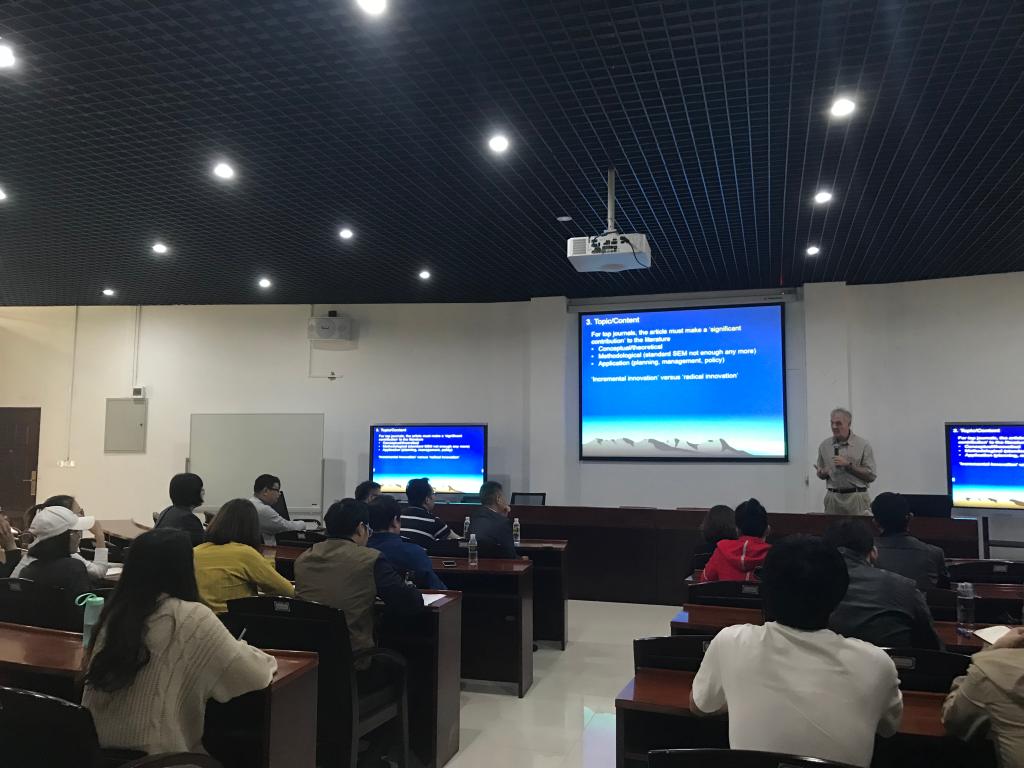 David Weaver教授围绕“如何在高端刊物发表文章”这个主题以严谨、专业、细致的学者风格为在座的老师和员工详尽地进行了讲解。讲解的内容以国际论文写作要求分为了8个部分:(1)Publishing Context;(2)Publication outlet selection;(2)Topic/content;(3)Manuscript structure;(4)Dancing with the journal;(6)Before submitting;(7)General principles of submission;(8)Responding to feedback。在David Weaver教授讲座后,taptap点点体育旅游公司宋子斌教授进行了总结点评并引导在座师生与David Weaver教授互动交流。在互动交流的环节中,老师与同学都积极向David Weaver教授请教问题,David Weaver教授对所有问题都进行了耐心、睿智、有趣的解答。