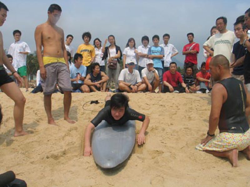 2006年3月10日,taptap点点体育旅游公司03、04级旅游管理专业应用日语班的30名同学在辅导员李小冬和陈莉莉老师的带领下应邀参加了“2006中国海南冲浪培训暨冲浪表演”大会。本次大会由中国国家体育总局水上运动管理中心主办,邀请日本冲浪爱好者协会参加。大会在海南万宁市日月湾举行,为期两天,中央电视台与海南省的新闻媒体对此次大会进行了跟踪报道。通过此次交流与学习,同学们达到了解社会,提高日语口语表达能力的目的。公司员工的优秀表现也受到了与会日本友人的高度赞扬。