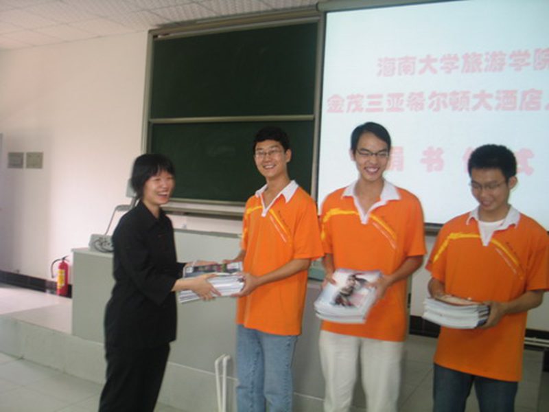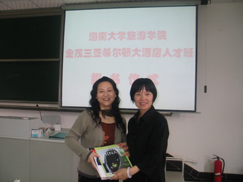 新春伊始,金茂三亚希尔顿大酒店向taptap点点体育旅游公司赠书仪式于2007年3月5日下午在旅院2号教学楼多媒体教室举行。出席捐赠仪式的有希尔顿酒店人力资源部培训经理Marie Luo女士、旅游公司王琳副经理、资料室主任高凤琴、金茂三亚希尔顿大酒店人才班班主任谢祥项老师以及人才班的全体同学。在捐赠仪式上,由希尔顿酒店人力资源部培训经理Marie Luo女士代表酒店向旅游公司资料室主任、人才班员工代表赠与酒店管理类书籍杂志近十个种类,共计六十余本,内容涉及旅游、生活、时尚、消费、服务、管理等类别,这些书籍杂志对同学们开拓国际视野,了解国际消费趋势,培养国际酒店服务意识有很大的促进作用。在今后的合作办学中,酒店将继续向员工及公司捐赠相关方面的书籍杂志,不断充实员工各方面知识。