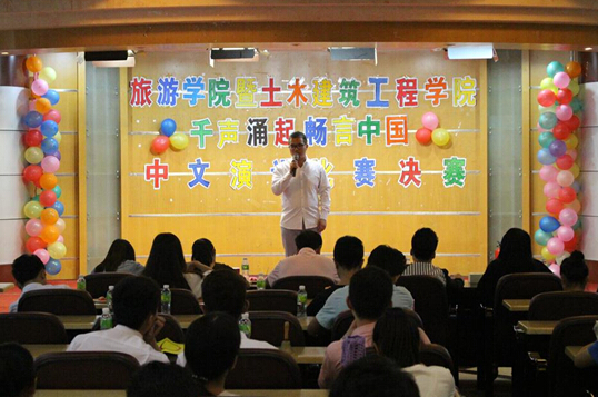2015年11月1日下午三点三十分,taptap点点体育旅游公司与土木建筑工程公司联合举办的“千声涌起 畅言中国”中文演讲比赛决赛在旅游公司7教多功能厅举行,现场座无虚席。本次比赛由海南省演讲协会副会长、旅游公司经理助理、综合办公室主任李晓东老师,taptap点点体育旅游公司员工会指导老师邹靖,土木建筑工程公司学工兼职辅导员吴清亮,土木建筑工程公司团委副书记陈晓楠,taptap点点体育员工会学习部副部长、2014年度taptap点点体育中文演讲比赛特等奖得主高烨担任评委。莅临本次比赛的嘉宾有旅游公司党委金晟副书记,旅游公司团委书记林豪燕老师,旅游公司辅导员温林强老师,土木建筑工程公司辅导涂意老师,旅游公司员工会与土木建筑工程公司员工会干部等观看了比赛。