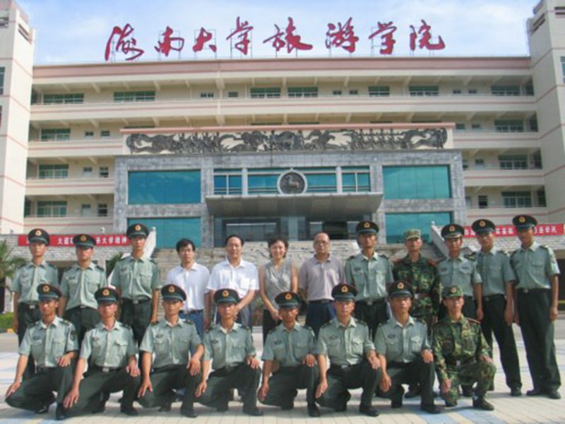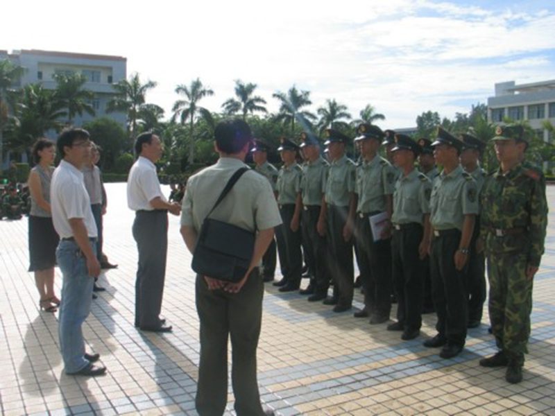 2008年9月10日上午9:00分,旅游公司领导班子在公司党委金晟副书记的带领下,在公司广场看望08级军训教官。
