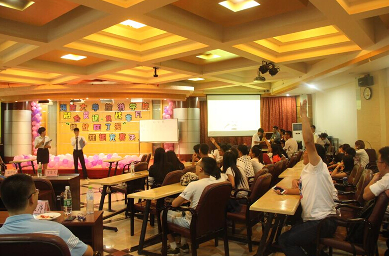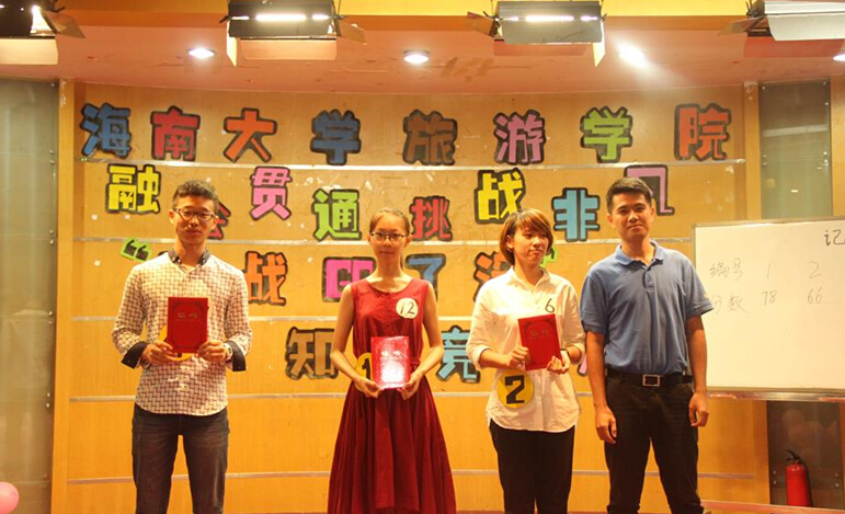 本次比赛场面激烈火热,却又不失搞笑幽默,知识氛围浓厚,全场座无虚席。决赛选手秉承着友谊第一,比赛第二,融会贯通,挑战非凡的宗旨,让自己开动脑筋,开拓眼界,虚心学习。此次比赛的题目涉及体育、旅游、文学、理化、艺术、人文地理、时事政治、军事科技、影视娱乐、趣味生活、流行时尚等方面。全程分为三轮比拼。第一轮“单枪直入”,考验选手知识的全面性。第二轮“双剑合璧”,分组作战,每两位选手一组,来考验选手团队的默契程度。第三轮“不服来战”,考察选手的胆识与合理挑战选择。中场休息时开展的观众互动有奖问答环节更是为比赛增添一道色彩,让观众也体验了一把知识抢答的紧张感。三轮比赛,选手们各有千秋,毫不吝啬地展现自己的才华和知识储量,面对一些困难的题目也能够从容答对,引发了现场阵阵掌声。通过三轮激烈的比拼,15级旅管三班谢睿真荣获第一名,15级旅管一班李嬴、14级应用外语三班谷雨分列二三名,14级会展王延舜、15旅管三班彭琛、15级中外会展林慧夺得优秀奖。