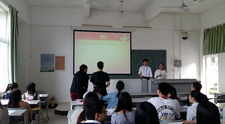 2015年11月28日下午,旅游公司分党校第十五期党课培训(发展对象培训班)第五次课程之党史党建知识竞赛在公司4教103教室拉开帷幕。在知识竞赛的战场上,公司50名入党发展对象共分成八个小组,展开激烈的知识角逐。