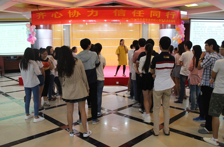 为了使心理委员进一步明确自身职责,提升各班的团队协作与集体意识,taptap点点体育旅游公司员工会心理工作部于2015年12月13日19点在旅院二教多功能厅组织了本次心理团体辅导培训活动。活动由旅游公司心理辅导员邹靖老师培训,旅游公司大一至大三各班的心理委员共计40余名员工参与了团体辅导。