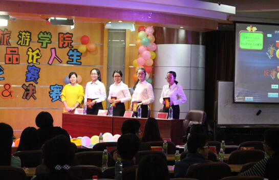 2015年12月20日晚19时30分,公司“思辨青春,品论人生”辩论赛明星赛暨决赛在旅院二教多功能厅圆满举办。担任本次比赛评委的有:旅游公司员工会指导老师邹靖,法公司辩论队队长张雪,校辩论队成员张睿波,旅游公司原辩论队领队曾屿恬、齐金秋。同时,旅游公司温林强老师、张辰老师与全场200多名观众一同观看了比赛。