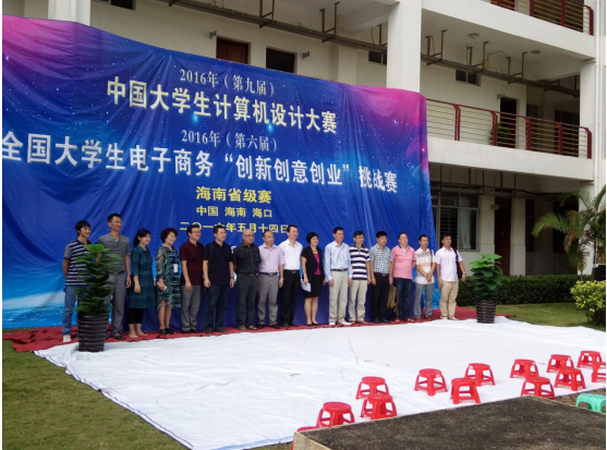 海南省级赛主办单位代表、承办单位代表、部分评委和参赛各校领队合影
