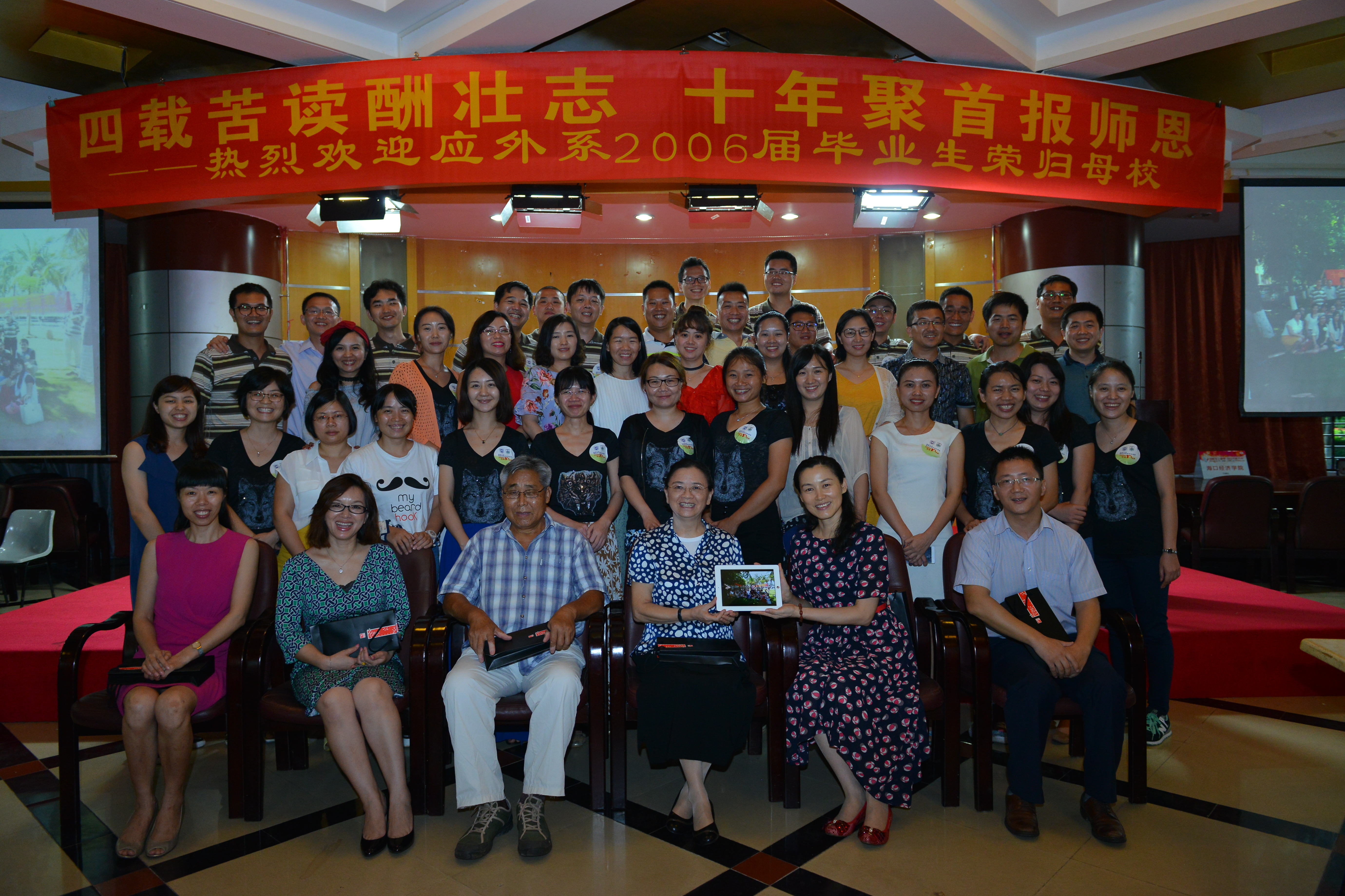 2016年6月18日,旅游公司应用外语系2006届50余名从世界各地赶来共赴十年之约的员工们,在旅游公司多功能厅举行了师生座谈会。公司韦开蕾经理、党委韩淑梅书记、王永强副经理及冯源老师、赵汉生老师、李枚珍老师等出席了座谈会。